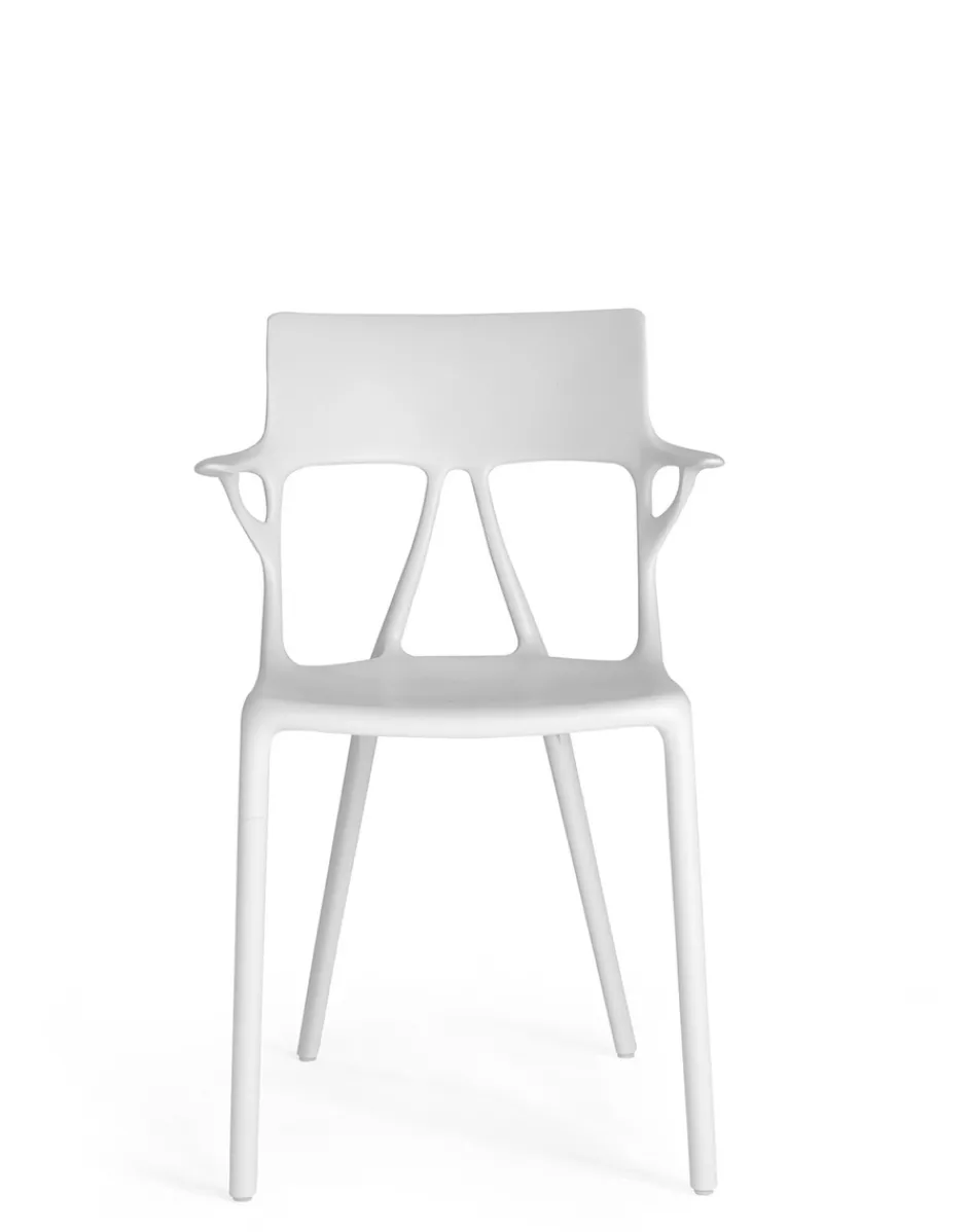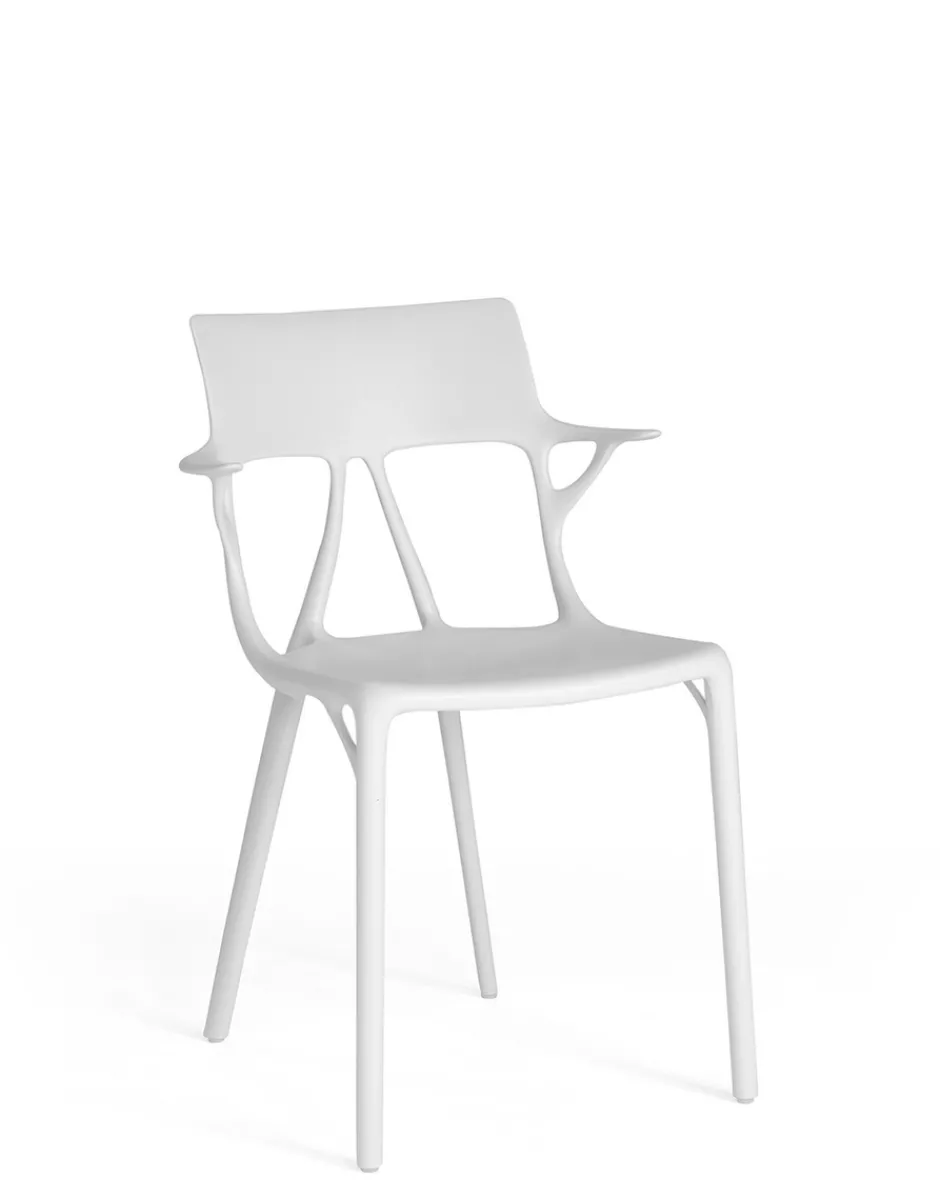 Kartell continua nel suo continuo impegno alla sostenibilità con prodotti eco-friendly che si inseriscono nell’ampio progetto espresso dal manifesto industriale Kartell loves the planet. A.I. è la sedia realizzata utilizzando per la prima volta materiale riciclato in cui qualità estetica e requisiti strutturali restano immutati e si coniugano al design generativo.Il valore aggiunto di A.I. consiste nell’essere la prima famiglia di prodotti concepita dall’Intelligenza Artificiale che ha risposto agli input ricevuti dal designer (Philippe Starck) e al know-how dall’azienda (Kartell). Nello specifico, pensiero creativo, know-how aziendale e intelligenza artificiale si sono fuse per concepire un modello di sedia totalmente elaborato da un algoritmo che rispetta le richieste originali del designer e dell’azienda ovvero essere un prodotto, confortevole, che abbia i requisiti strutturali di resistenza e solidità richiesti, mantenendo anche uno dei valori principali di Kartell: essere un prodotto industriale stampato ad iniezione di grande qualità estetica.