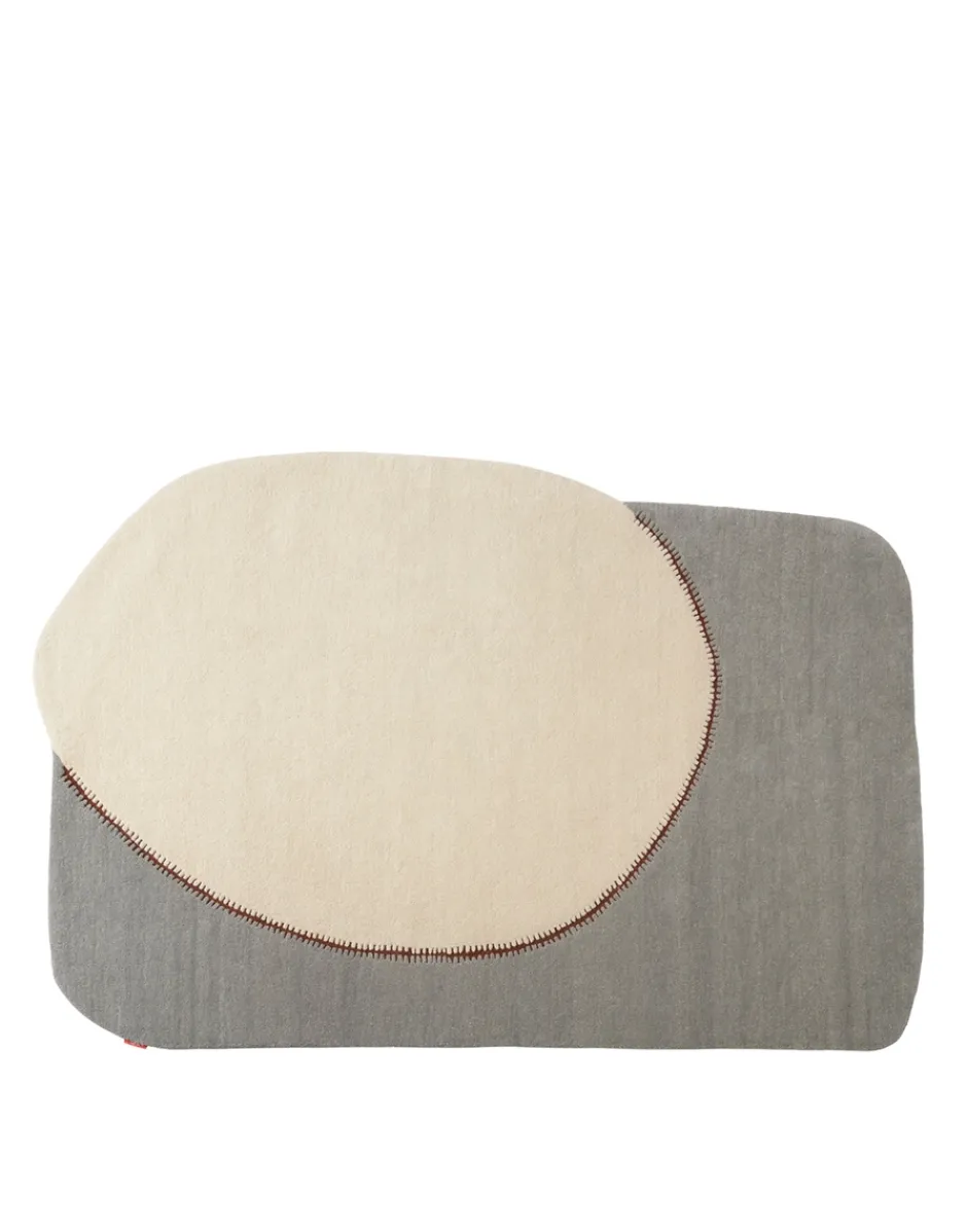 I tappeti AALAND sono caratterizzati da un motivo grafico unico. Questo motivo rappresenta due forme organiche tondeggianti, ognuna con campiture differenti, posizionate vicine l’una all’altra e unite da un segno grafico,una sorta di sutura. Questo accorgimento crea un effetto visivo di grande impatto,arricchendo ulteriormente l’estetica e la vivacità dello spazio circostante.