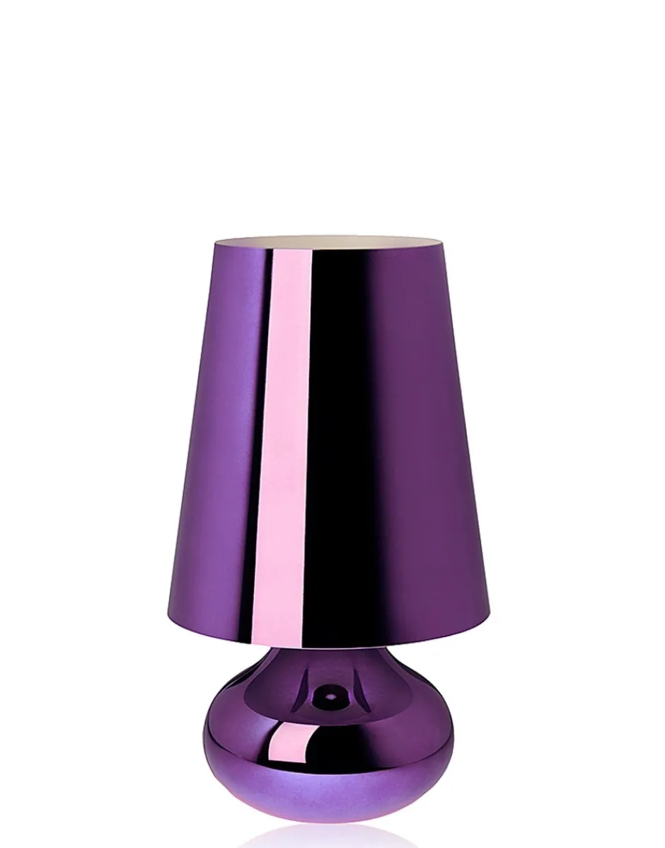 La tipica lampada da tavolo degli anni ’70, rivisitata per forma e colore. L’abat-jour Cindy, composta da un cappello conico e da una base sferica, che scende a goccia, viene proposta in un’ampia gamma di tonalità metallizzate, tutte coprenti.