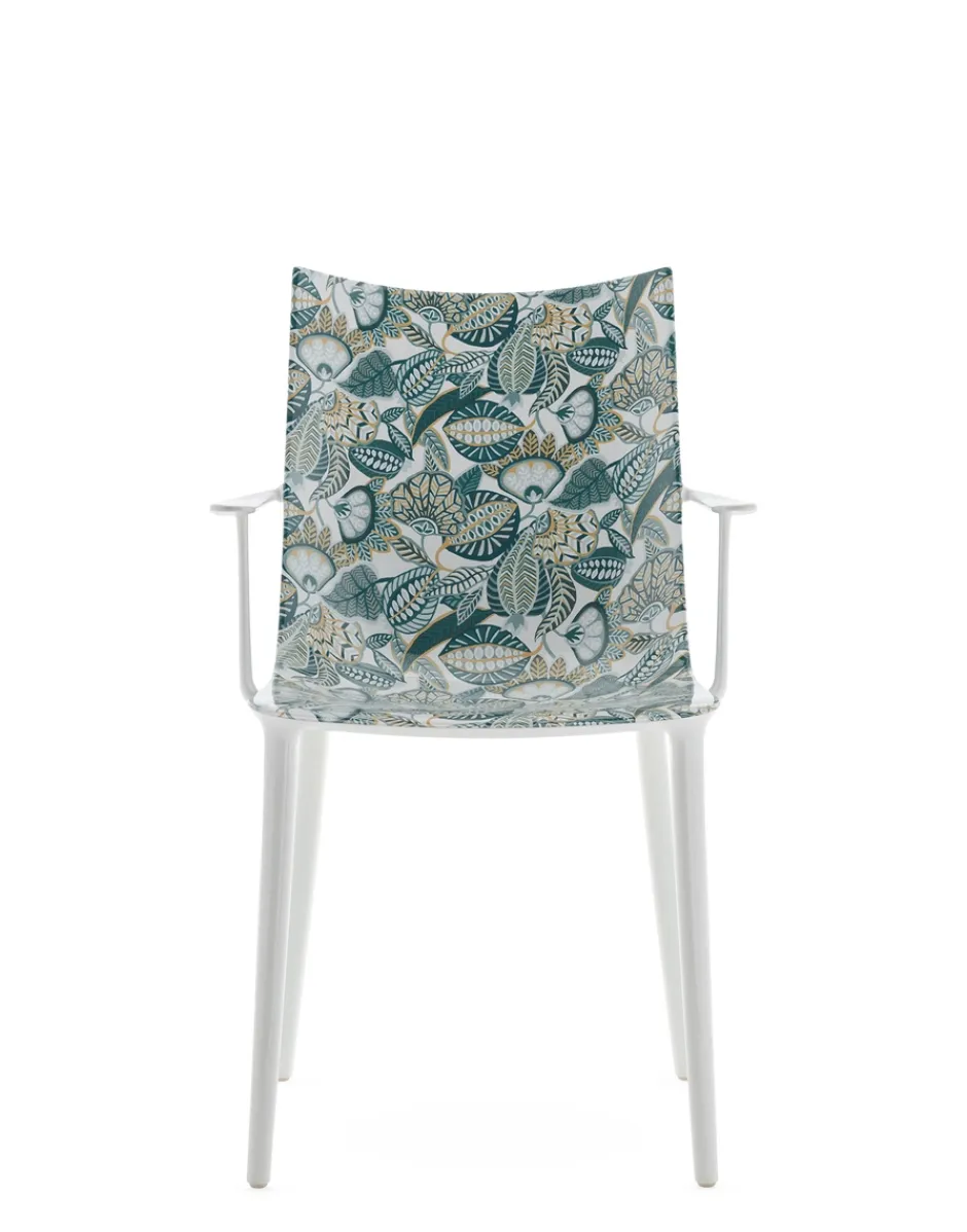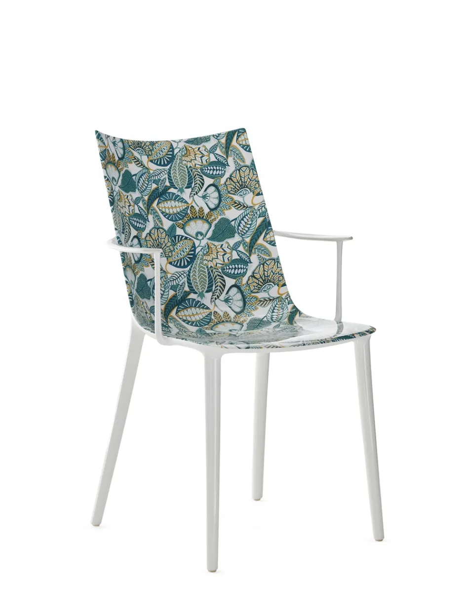 Philippe Starck ci conduce verso un nuovo vertice con la sedia H.H.H. – HER HIGHEST HIGHNESS. Con un’eleganza e un’imponenza grafica senza pari, H.H.H. definisce l’essenza stessa dell’essere umano che interagisce con essa, costringendolo a prendere una posizione. Un oggetto che va oltre il mero concetto di seduta, trasformando ogni momento trascorso su di essa in un momento di vera e propria regalità. La struttura è in materiale riciclato e la seduta è disponibile in diverse finiture: pelle riciclata con trattamento di concia green, nei colori nero e cuoio, ecofriendly texture proveniente in parte da materiale riciclato e in parte da fonti rinnovabili nei colori nero e tabacco e nella finitura lucida super glossy nei colori bianco, nero, bordeaux, ruggine, senape, blu e verde.Ma H.H.H. si eleva al di sopra delle semplici funzioni pratiche di una sedia, diventando un emblema di stile e che incanta e ispira chiunque vi si avvicini grazie all’edizione Kartell x Liberty, rivestita in sei tessuti Liberty con vivaci stampe floreali.Fedele al suo essere pioniera nella ricerca di nuove e diverse forme di innovazione tecnologica, Kartell ha inoltre deciso di fare un ulteriore passo in questa direzione, sperimentando una nuova tecnica di “graphic impression” in cui, con uno stampaggio altamente tecnologico, vengono proposti 4 pattern floreali e geometrici in diverse versioni cromatiche.