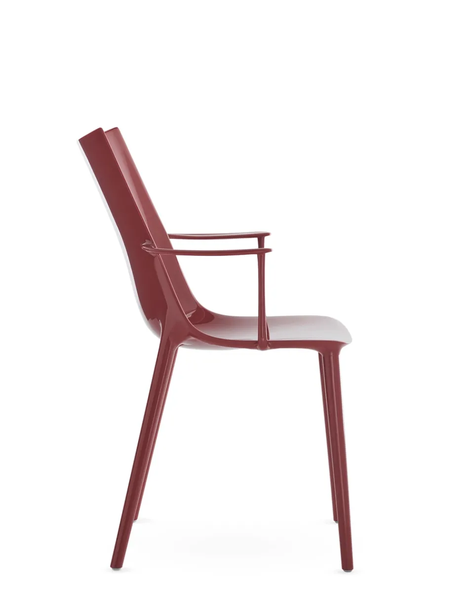 Philippe Starck ci conduce verso un nuovo vertice con la sedia H.H.H. – HER HIGHEST HIGHNESS. Con un’eleganza e un’imponenza grafica senza pari, H.H.H. definisce l’essenza stessa dell’essere umano che interagisce con essa, costringendolo a prendere una posizione. Un oggetto che va oltre il mero concetto di seduta, trasformando ogni momento trascorso su di essa in un momento di vera e propria regalità. La struttura è in materiale riciclato e la seduta è disponibile in diverse finiture: pelle riciclata con trattamento di concia green, nei colori nero e cuoio, ecofriendly texture proveniente in parte da materiale riciclato e in parte da fonti rinnovabili nei colori nero e tabacco e nella finitura lucida super glossy nei colori bianco, nero, bordeaux, ruggine, senape, blu e verde.Ma H.H.H. si eleva al di sopra delle semplici funzioni pratiche di una sedia, diventando un emblema di stile e che incanta e ispira chiunque vi si avvicini grazie all’edizione Kartell x Liberty, rivestita in sei tessuti Liberty con vivaci stampe floreali.Fedele al suo essere pioniera nella ricerca di nuove e diverse forme di innovazione tecnologica, Kartell ha inoltre deciso di fare un ulteriore passo in questa direzione, sperimentando una nuova tecnica di “graphic impression” in cui, con uno stampaggio altamente tecnologico, vengono proposti 4 pattern floreali e geometrici in diverse versioni cromatiche.