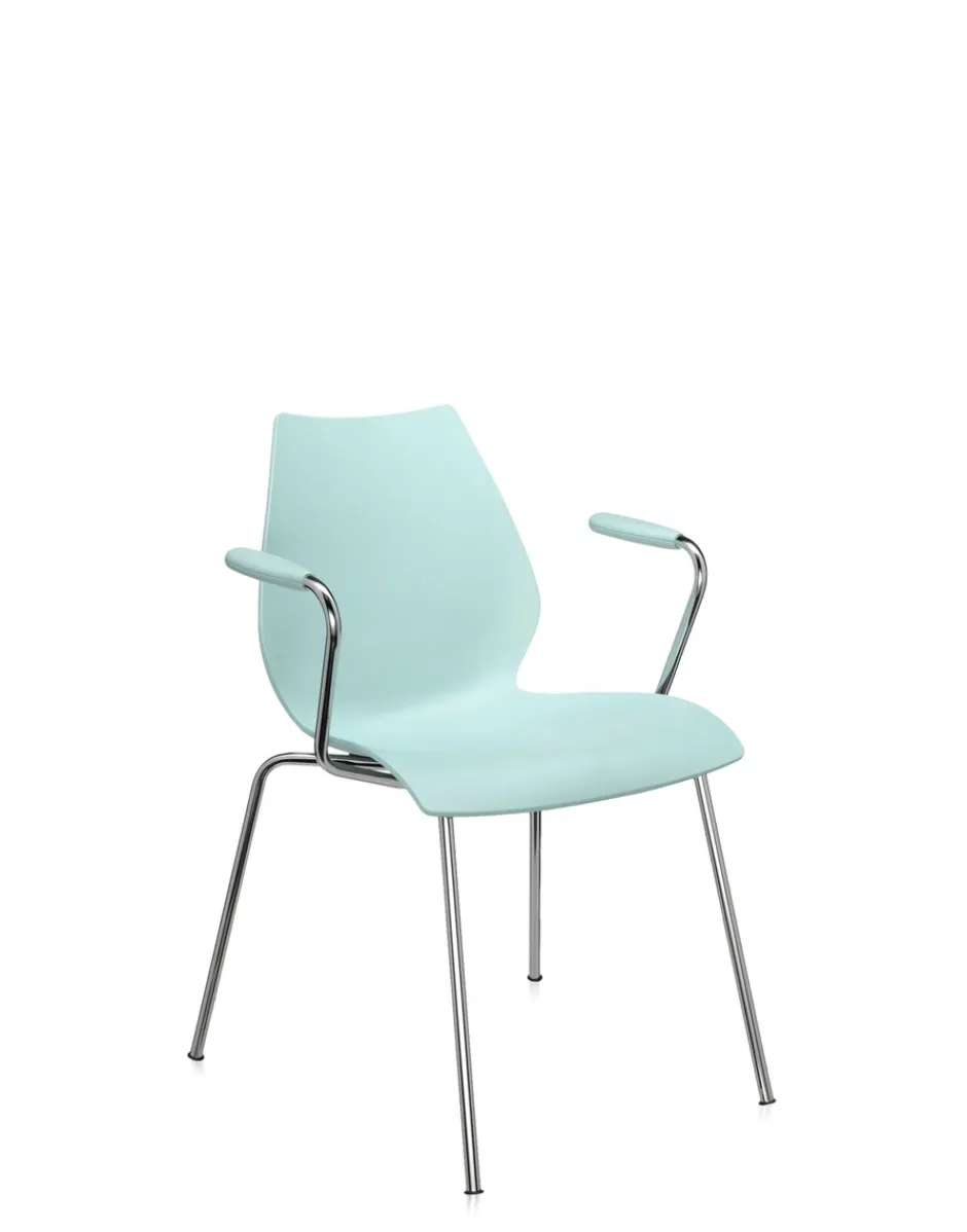 Le sedie Maui formano una famiglia ricca di molte varianti cromatiche e formali hard e soft, in grado di soddisfare esigenze specifiche, negli spazi collettivi o negli ambienti domestici. Grazie al suo design, la sedia Maui è impilabile e può essere unita ad altre sedute dello stesso tipo, fila per fila, all’infinito grazie ad un semplice gancio posteriore.