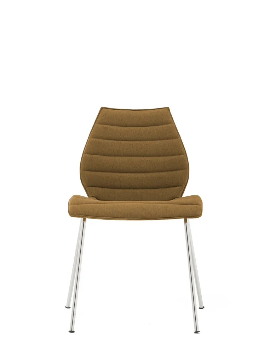 Le sedie Maui formano una famiglia ricca di molte varianti cromatiche e formali hard e soft, in grado di soddisfare esigenze specifiche, negli spazi collettivi o negli ambienti domestici. Maui è ora disponibile con i nuovi tessuti Noma, realizzati al 50% con fibre riciclate. il tessuto soddisfa tutti gli standard europei di sicurezza antincendio. Kartell ha selezionato 6 varianti colore inserite a catalogo, immediatamente disponibili, ma propone l’intera gamma di colori come Tessuto Cliente. Kartell Noma si distingue per il suo design melange bicolore attraente, resistente e versatile, per l’eccellente resistenza al fuoco e per il forte profilo ambientale.