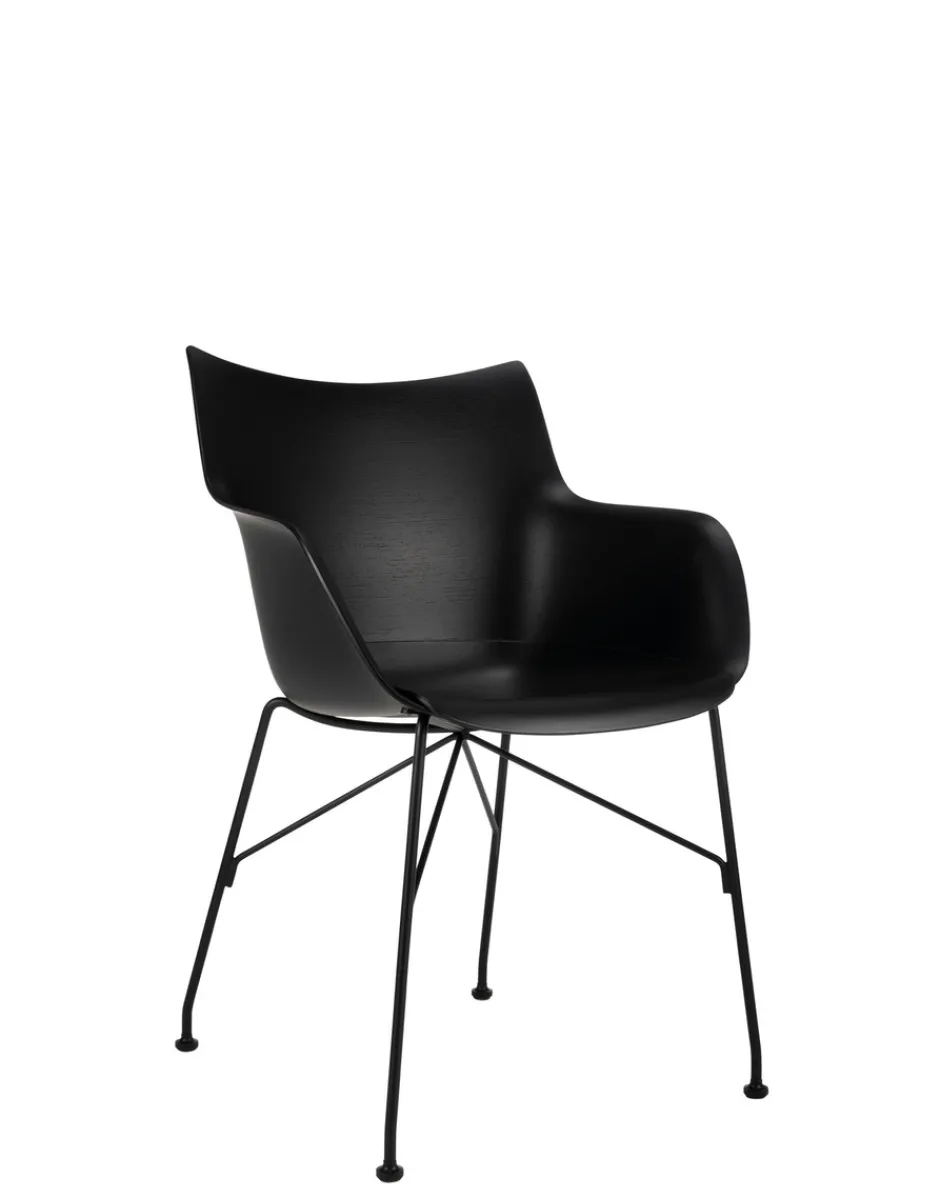 Q/Wood è la poltroncina della collezione Smart Wood le cui linee avvolgenti creano morbidi braccioli per il massimo comfort della seduta. Attraverso uno speciale brevetto, infatti, il legno viene lavorato con uno stampo in grado di portare al limite la curvatura del pannello e creare la scocca della seduta con rotondità sinuose.