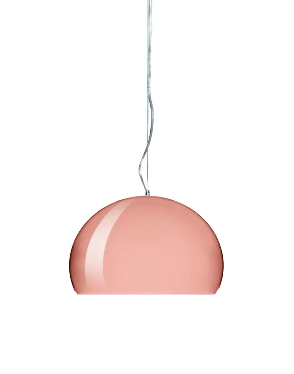 FL/Y è una lampada a sospensione dalle linee essenziali. La particolare trasparenza del materiale e la lucentezza dei colori richiama l’idea di una bolla di sapone, cangiante ai riflessi della luce. Inoltre la calotta non è perfettamente semisferica ma il piano secante è al di sotto dell’altezza del diametro per raccogliere maggiormente la luce. La lampada è proposta in tre diverse misure: Fl/Y (diametro 52cm, altezza diffusore 33cm), Small Fl/Y (diametro 38cm, altezza diffusore 28cm) e Big Fl/Y (diametro 83cm, altezza diffusore 55cm).