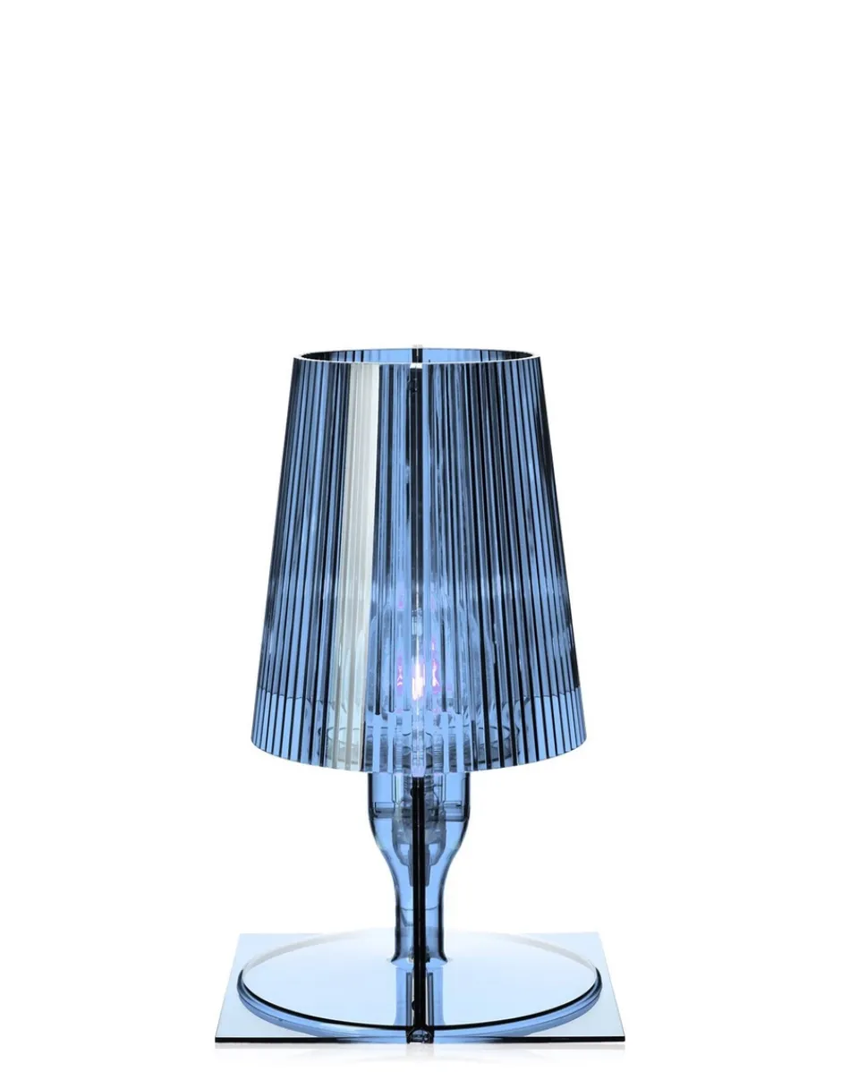 L’icona classica dell’abat-jour da comodino viene rivisitata dalla tecnologia di Kartell per trasformarsi in prodotto industriale in svariate tonalità cromatiche. La forma di Take nasce dalla congiunzione di due parti speculari: due lastre piatte, rettangolari che da bidimensionali al centro assumono la forma e il volume della “semi-lampada”. La plissettatura interna del diffusore impreziosisce l’oggetto creando, quando accesa, un gioco di riflessi.