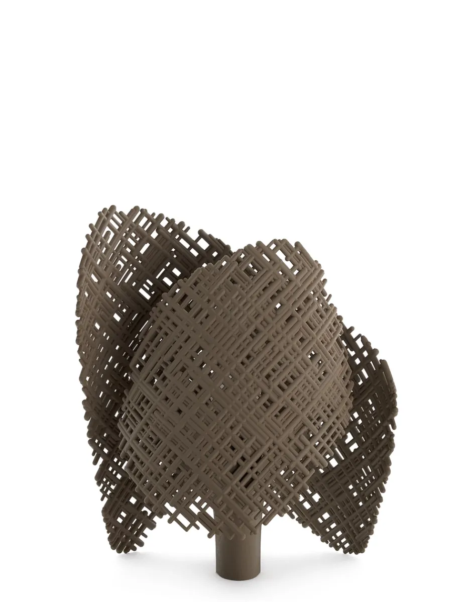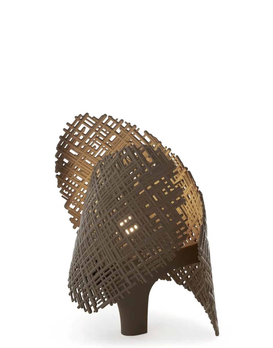 TEA è un segno astratto, un oggetto dall’imprinting quasi artigianale che sembra rappresentare due mani che racchiudono nei loro palmi la luce, lasciandola fuoriuscire dalle trame irregolari che la definiscono in un gioco di chiaroscuri, come per le ombre proiettate sul muro.Particolarmente innovativo il touch irregolare e poroso scelto per la sua finitura estremamente naturale, simile alla terracotta ed al biscuit,con una gamma cromatica basica per meglio far comprendere che, anche dal riciclo di altri materiali, si possono realizzare oggetti di grande qualità e poesia. TEA è realizzata in tecnopolimero termoplastico riciclato ed è disponibile nei colori, bianco, antracite, terracotta e tortora.