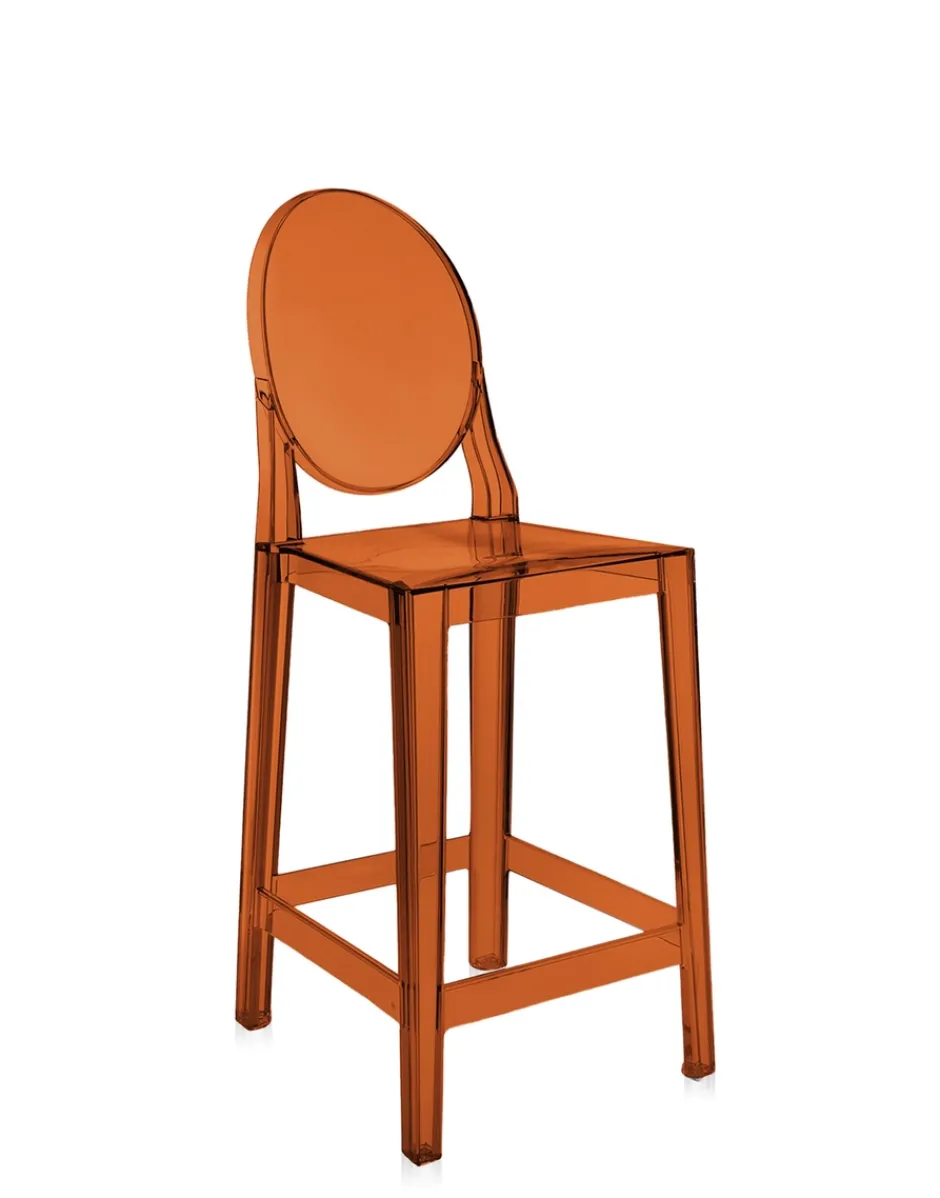 One more e One more please sono gli sgabelli della famiglia “Ghost”, in due diverse altezze – 65 cm o 75 cm, e schienali – ovali o squadrati, agili, pratici, colorati e resistenti per ogni utilizzo habitat e contract.