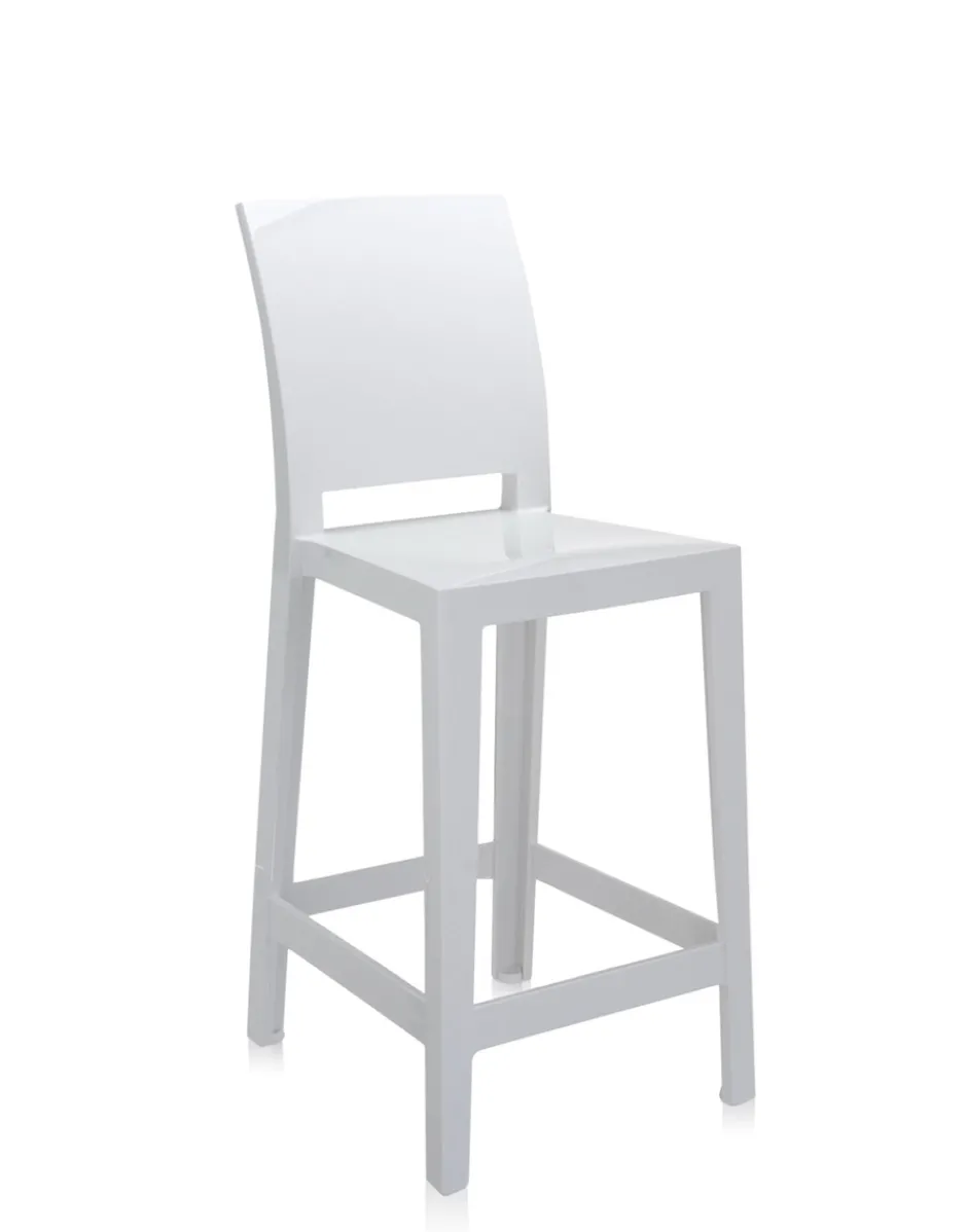 One more e One more please sono gli sgabelli della famiglia “Ghost”, in due diverse altezze – 65 cm o 75 cm, e schienali – ovali o squadrati, agili, pratici, colorati e resistenti per ogni utilizzo habitat e contract.