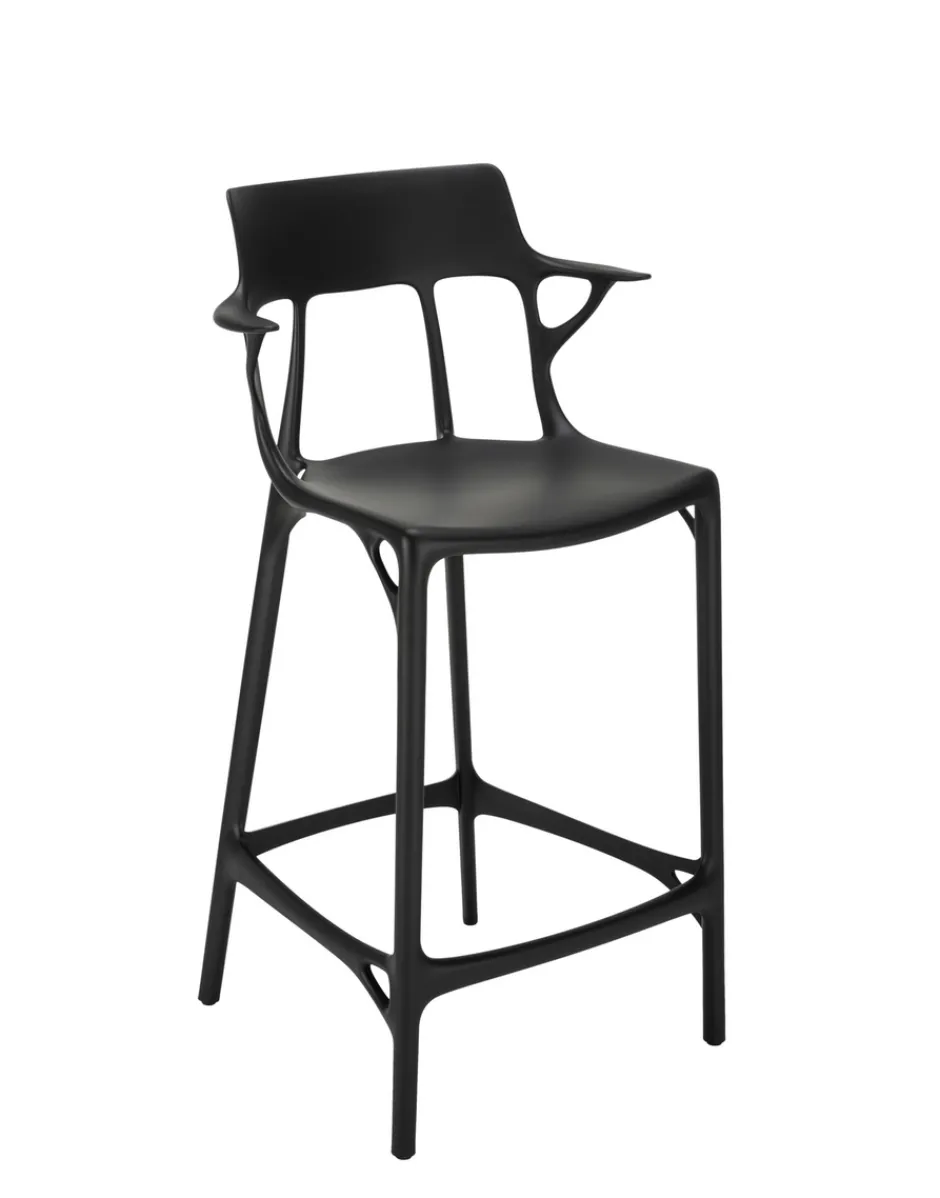 Si allarga la famiglia A.I. con A.I. Stool, uno sgabello in materiale riciclato che punta tutto sul comfort, con una seduta molto larga e accogliente. Disponibile in due altezze per soddisfare tutte le esigenze.Il valore aggiunto di A.I. consiste nell’essere la prima famiglia di prodotti concepita dall’Intelligenza Artificiale che ha risposto agli input ricevuti dal designer (Philippe Starck) e al know-how dall’azienda (Kartell). Nello specifico, pensiero creativo, know-how aziendale e intelligenza artificiale si sono fuse per concepire un modello di sedia totalmente elaborato da un algoritmo che rispetta le richieste originali del designer e dell’azienda ovvero essere un prodotto, confortevole, che abbia i requisiti strutturali di resistenza e solidità richiesti, mantenendo anche uno dei valori principali di Kartell: essere un prodotto industriale stampato ad iniezione di grande qualità estetica.