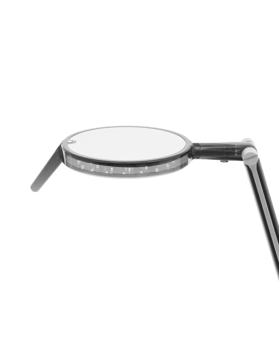 Aledin è una lampada da tavolo a led, disponibile in due diverse versioni, Tec e Dec, che si distinguono per il diffusore. Aledin Tec è caratterizzata da una testa piatta, che permette di ottenere un fascio luminoso diretto e al contempo orientabile, grazie alla possibilità di movimento del diffusore stesso. Per tali caratteristiche è più indicata per un utilizzo office, al contrario della versione Dec che si contraddistingue invece per la decorazione sfaccettata del diffusore a cono. Il fascio di luce risulta quindi più ampio e di atmosfera, ideale per un uso home. I due bracci snodati in policarbonato, che compongono la struttura di entrambi i modelli, si caratterizzano per la presenza di due stecche in alluminio, che assolvono alla funzione di conduttori. In classe 3, la lampada ha un’alta resa luminosa, circa 600lm con una potenza di 5.6W, che permette un forte risparmio energetico grazie a LED di ultima generazione.