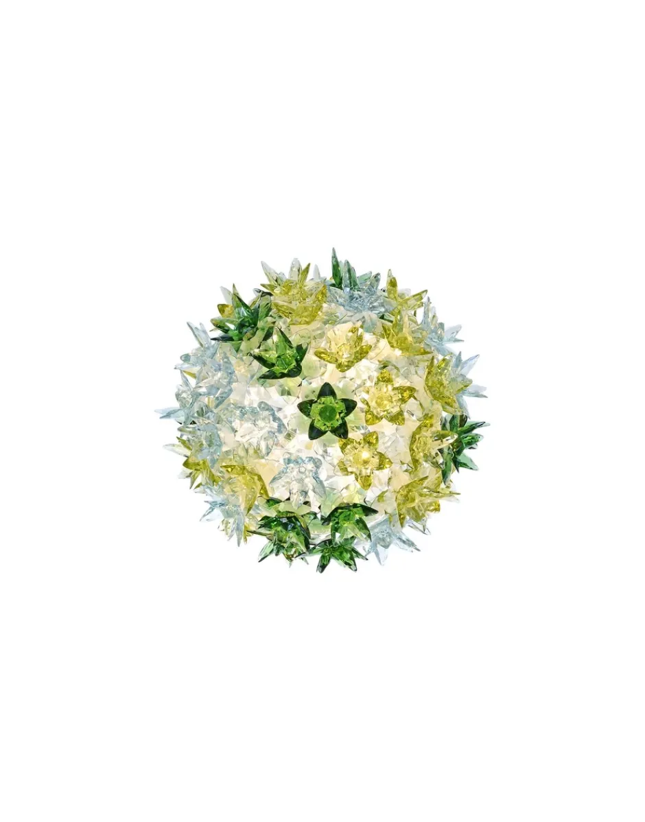 Bloom è composta da uno scheletro tubolare in policarbonato interamente ricoperto da una struttura composta da piccoli fiori a doppia corolla. Il risultato è una lampada a produzione industriale ma con le forme e la complessità stilistica di un pezzo unic