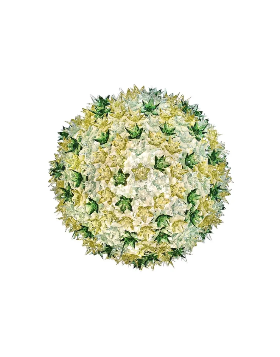Bloom è composta da uno scheletro tubolare in policarbonato interamente ricoperto da una struttura composta da piccoli fiori a doppia corolla. Il risultato è una lampada a produzione industriale ma con le forme e la complessità stilistica di un pezzo unico, artigianale. Una serie di lampadine posizionate sullo scheletro interno diffondono il fascio luminoso attraverso i petali, rifrangendosi sulle loro superfici sfaccettate sprigionando mille riflessi.