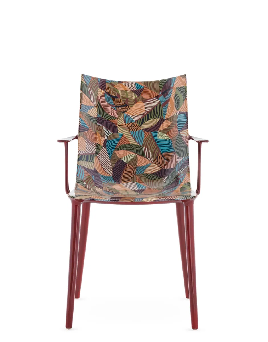 Philippe Starck ci conduce verso un nuovo vertice con la sedia H.H.H. – HER HIGHEST HIGHNESS. Con un’eleganza e un’imponenza grafica senza pari, H.H.H. definisce l’essenza stessa dell’essere umano che interagisce con essa, costringendolo a prendere una posizione. Un oggetto che va oltre il mero concetto di seduta, trasformando ogni momento trascorso su di essa in un momento di vera e propria regalità. La struttura è in materiale riciclato e la seduta è disponibile in diverse finiture: pelle riciclata con trattamento di concia green, nei colori nero e cuoio, ecofriendly texture proveniente in parte da materiale riciclato e in parte da fonti rinnovabili nei colori nero e tabacco e nella finitura lucida super glossy nei colori bianco, nero, bordeaux, ruggine, senape, blu e verde.Ma H.H.H. si eleva al di sopra delle semplici funzioni pratiche di una sedia, diventando un emblema di stile e che incanta e ispira chiunque vi si avvicini grazie all’edizione Kartell x Liberty, rivestita in sei tessuti Liberty con vivaci stampe floreali.Fedele al suo essere pioniera nella ricerca di nuove e diverse forme di innovazione tecnologica, Kartell ha inoltre deciso di fare un ulteriore passo in questa direzione, sperimentando una nuova tecnica di “graphic impression” in cui, con uno stampaggio altamente tecnologico, vengono proposti 4 pattern floreali e geometrici in diverse versioni cromatiche.