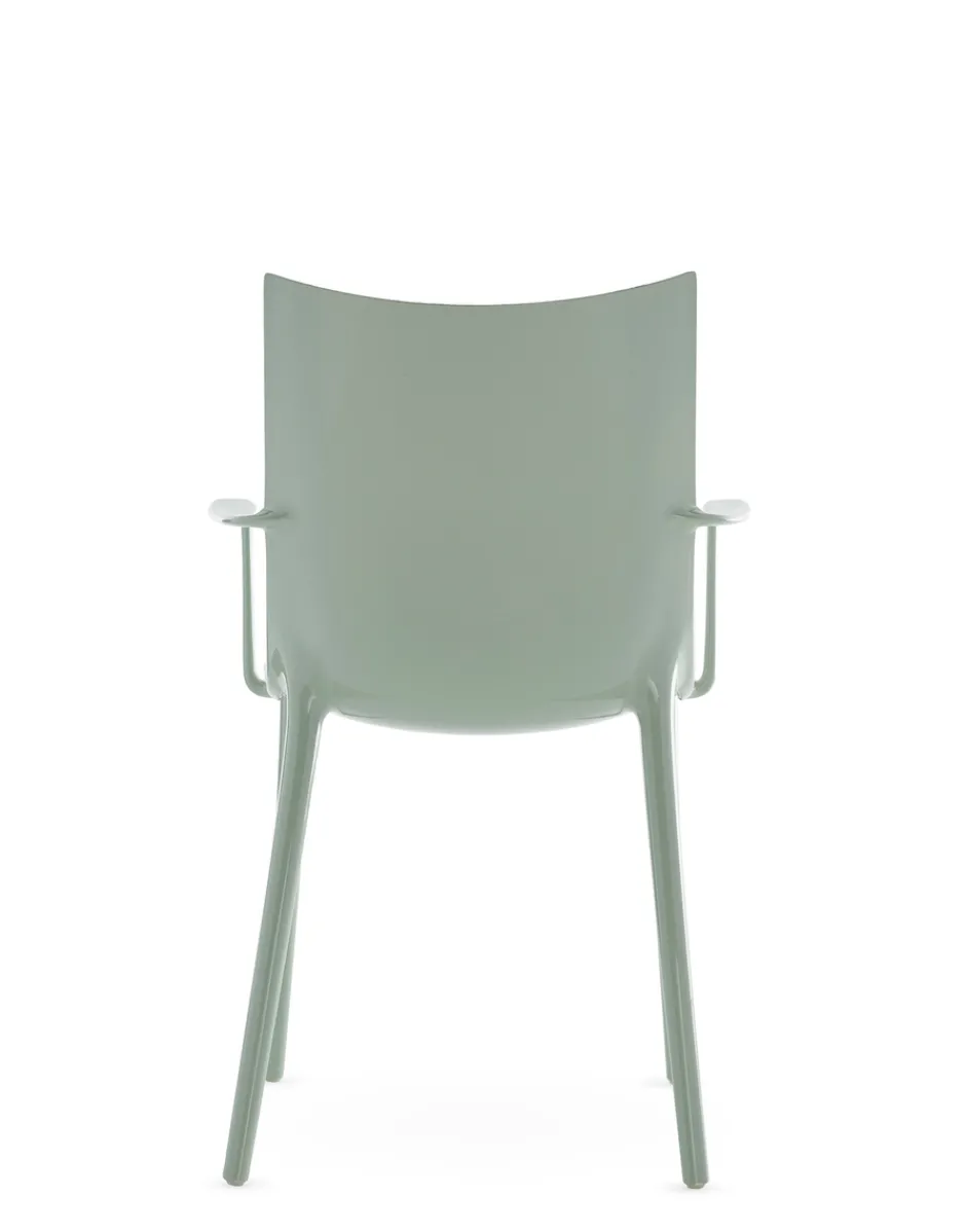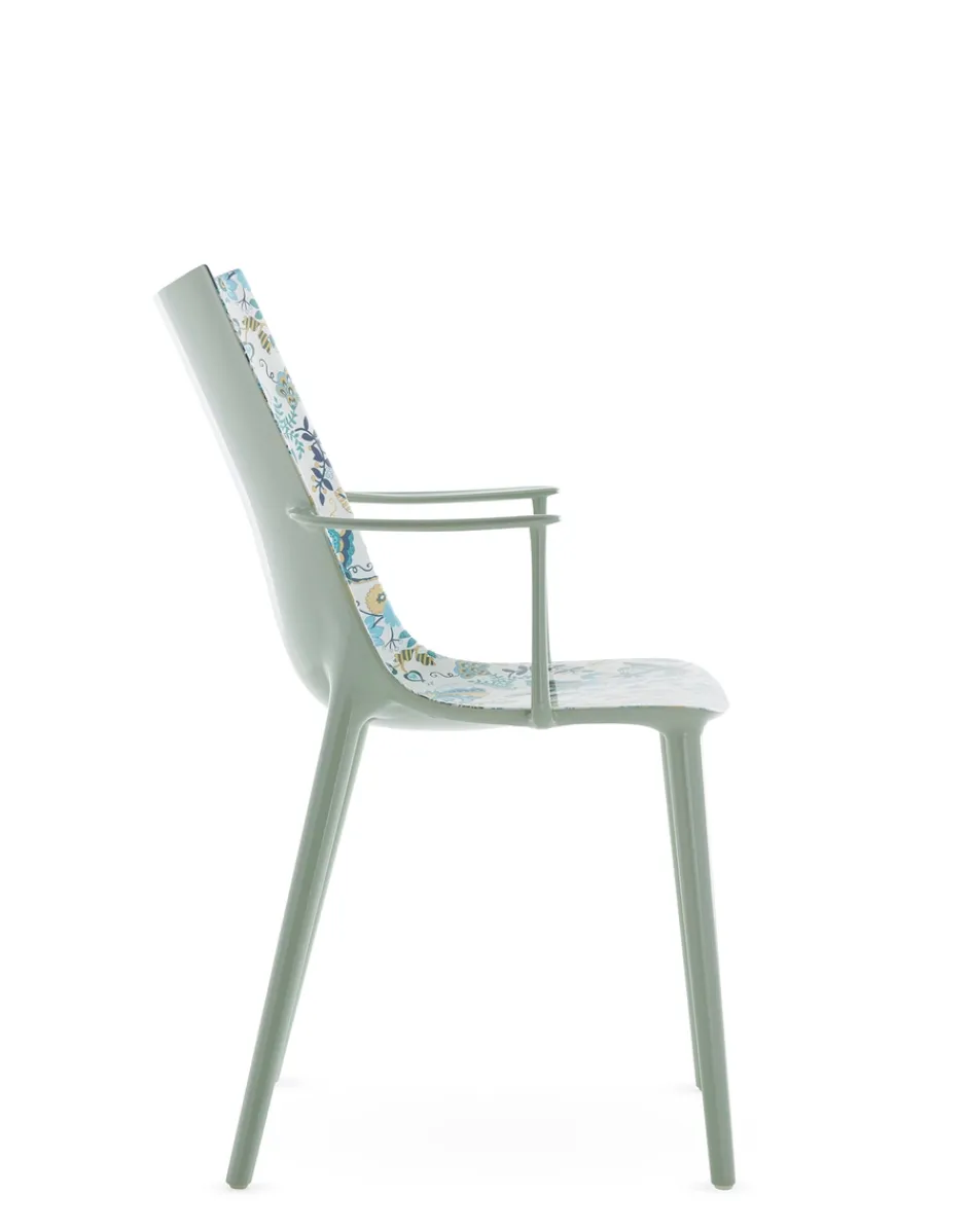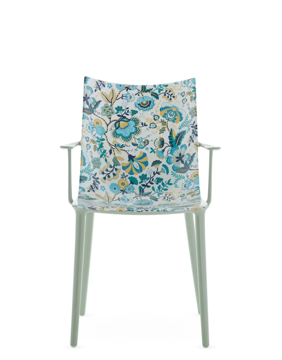 Philippe Starck ci conduce verso un nuovo vertice con la sedia H.H.H. – HER HIGHEST HIGHNESS. Con un’eleganza e un’imponenza grafica senza pari, H.H.H. definisce l’essenza stessa dell’essere umano che interagisce con essa, costringendolo a prendere una posizione. Un oggetto che va oltre il mero concetto di seduta, trasformando ogni momento trascorso su di essa in un momento di vera e propria regalità. La struttura è in materiale riciclato e la seduta è disponibile in diverse finiture: pelle riciclata con trattamento di concia green, nei colori nero e cuoio, ecofriendly texture proveniente in parte da materiale riciclato e in parte da fonti rinnovabili nei colori nero e tabacco e nella finitura lucida super glossy nei colori bianco, nero, bordeaux, ruggine, senape, blu e verde.Ma H.H.H. si eleva al di sopra delle semplici funzioni pratiche di una sedia, diventando un emblema di stile e che incanta e ispira chiunque vi si avvicini grazie all’edizione Kartell x Liberty, rivestita in sei tessuti Liberty con vivaci stampe floreali.Fedele al suo essere pioniera nella ricerca di nuove e diverse forme di innovazione tecnologica, Kartell ha inoltre deciso di fare un ulteriore passo in questa direzione, sperimentando una nuova tecnica di “graphic impression” in cui, con uno stampaggio altamente tecnologico, vengono proposti 4 pattern floreali e geometrici in diverse versioni cromatiche.