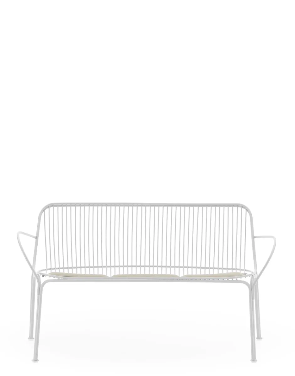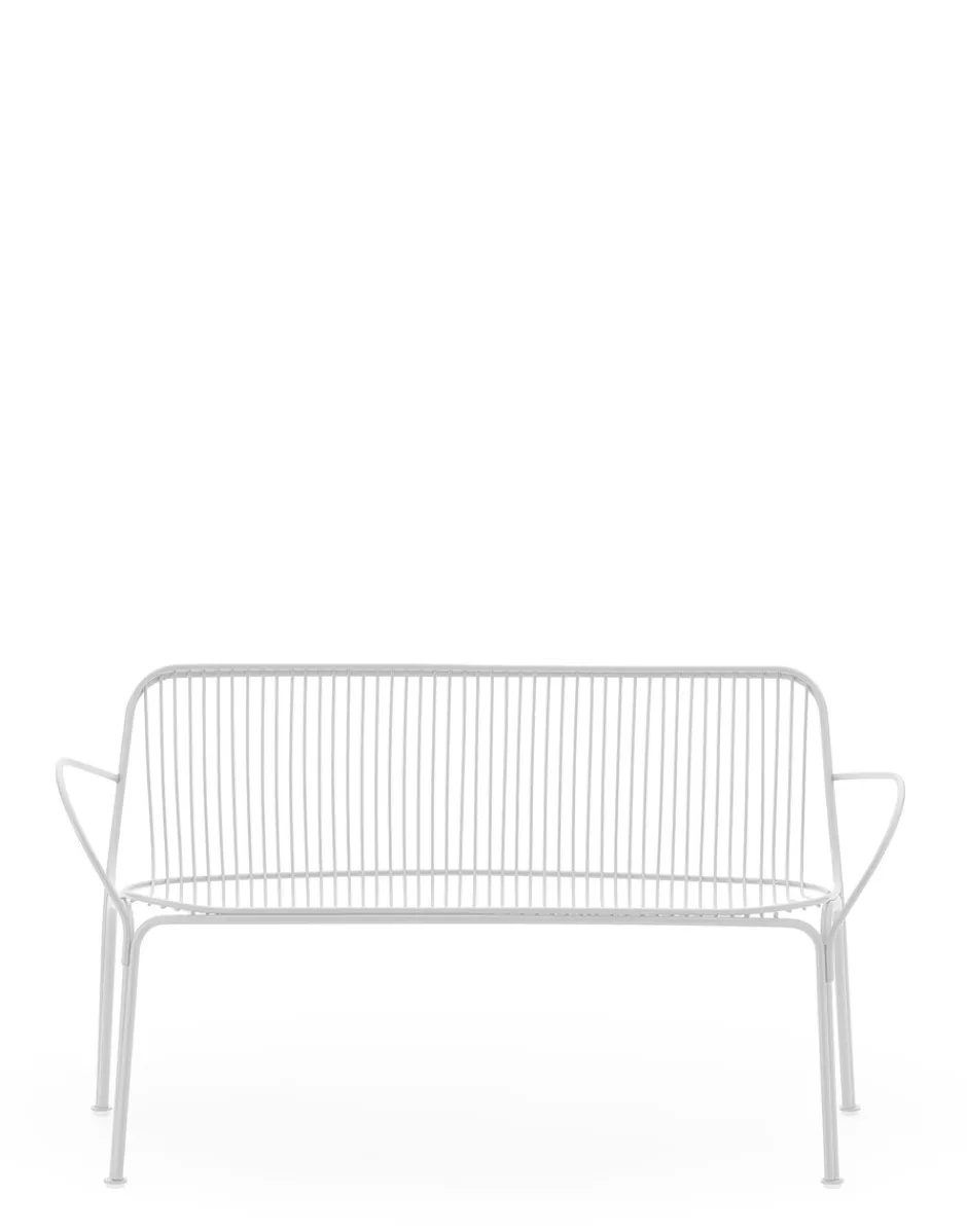 HIRAY gioca con il metallo, tra i materiali piùimportanti nella ridefinizione green del catalogo Kartell, lavorandolo con la tecnica del filo saldato. Il risultato è un segno essenziale e funzionalista e allo stesso tempo intriso di emozione. I fili di metallo disegnano pezzi dalla struttura ben definita ma leggera: sedia, sedia con braccioli, tavolino bistrot, poltrona, divano e side table. I colori della collezione sono bianco, bordeaux, nero e verde.