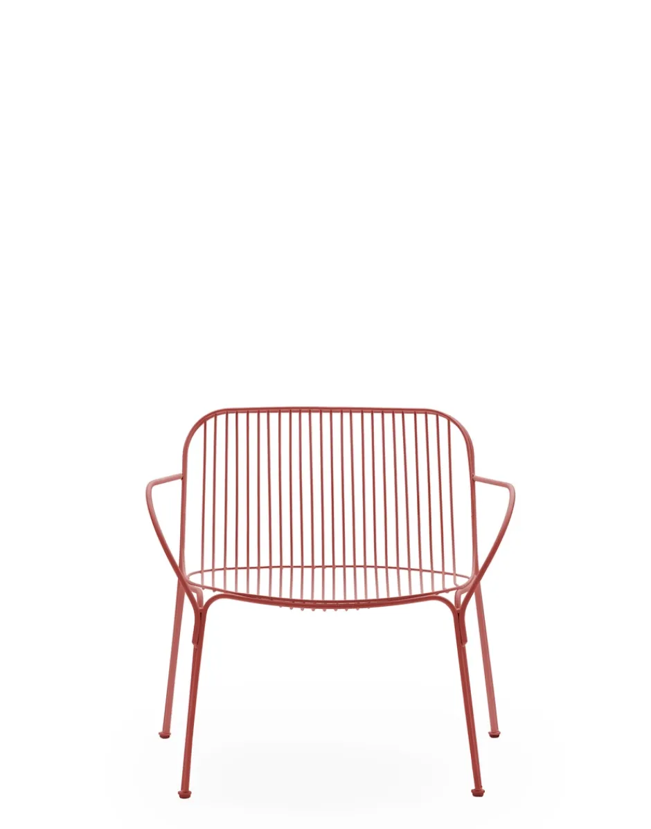 HIRAY gioca con il metallo, tra i materiali piùimportanti nella ridefinizione green del catalogo Kartell, lavorandolo con la tecnica del filo saldato. Il risultato è un segno essenziale e funzionalista e allo stesso tempo intriso di emozione. I fili di metallo disegnano pezzi dalla struttura ben definita ma leggera: sedia, sedia con braccioli, tavolino bistrot, poltrona, divano e side table. I colori della collezione sono bianco, bordeaux, nero e verde.