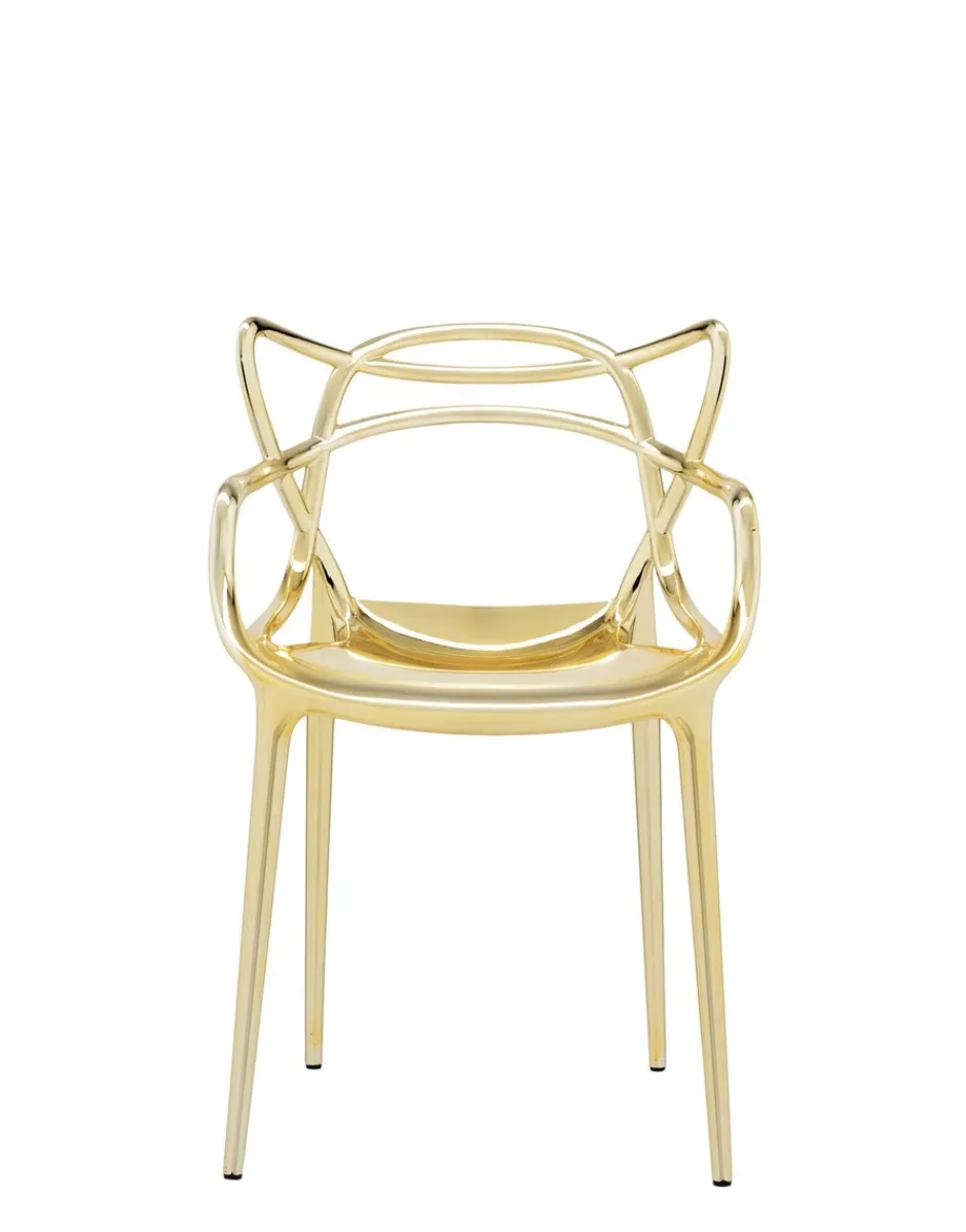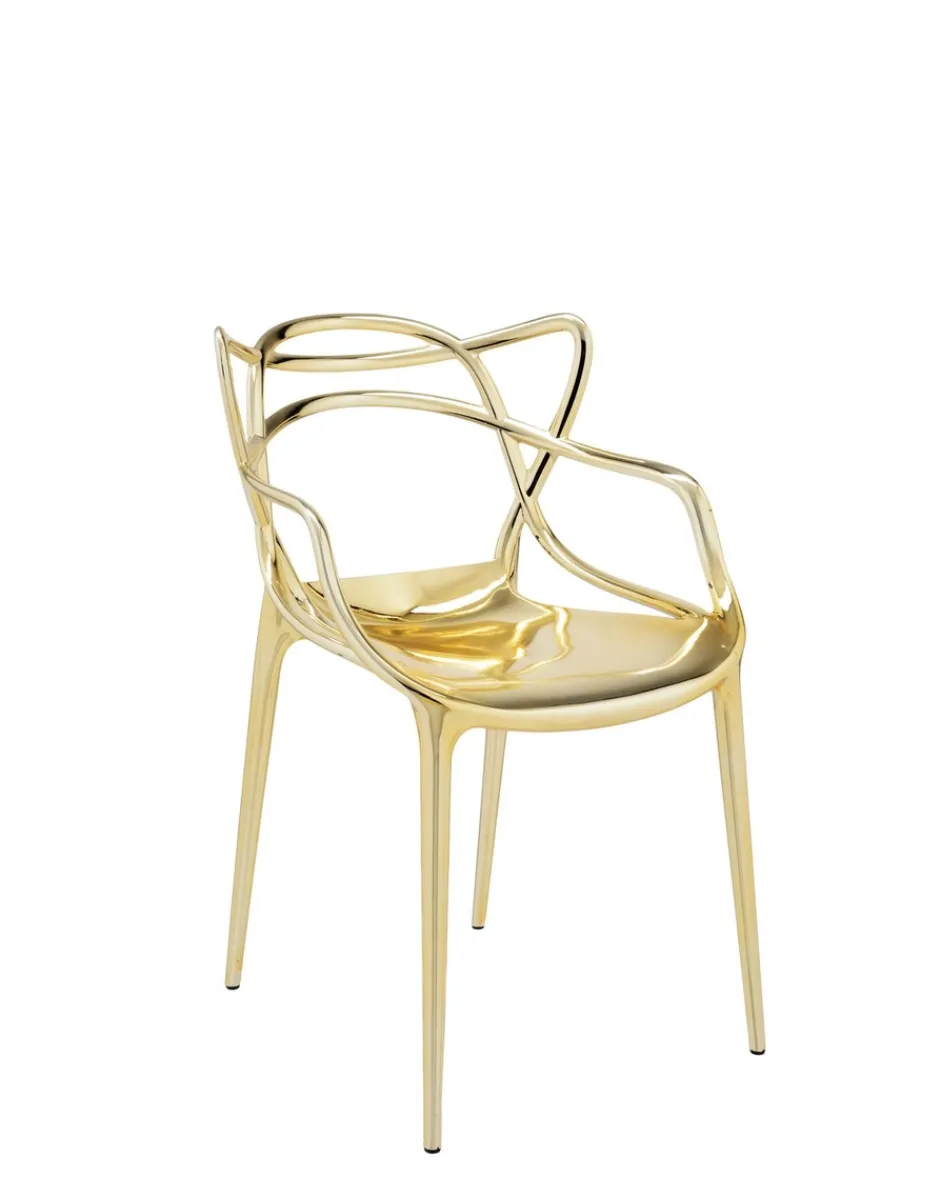 La sedia Masters è un acuto omaggio a tre sedie-simbolo, rilette e reinterpretate dal genio creativo di Starck. La “Serie 7” di Arne Jacobsen, la “Tulip Armchair” di Eero Saarinen e la “Eiffel Chair” di Charles Eames intrecciano le inconfondibili silhouette in un ibrido sinuoso, per dare vita a una fusione di stili originale e accattivante. Leggera e pratica, Masters può essere utilizzata anche all’esterno. Per un effetto più prezioso è proposta anche in finiture metallizzate.