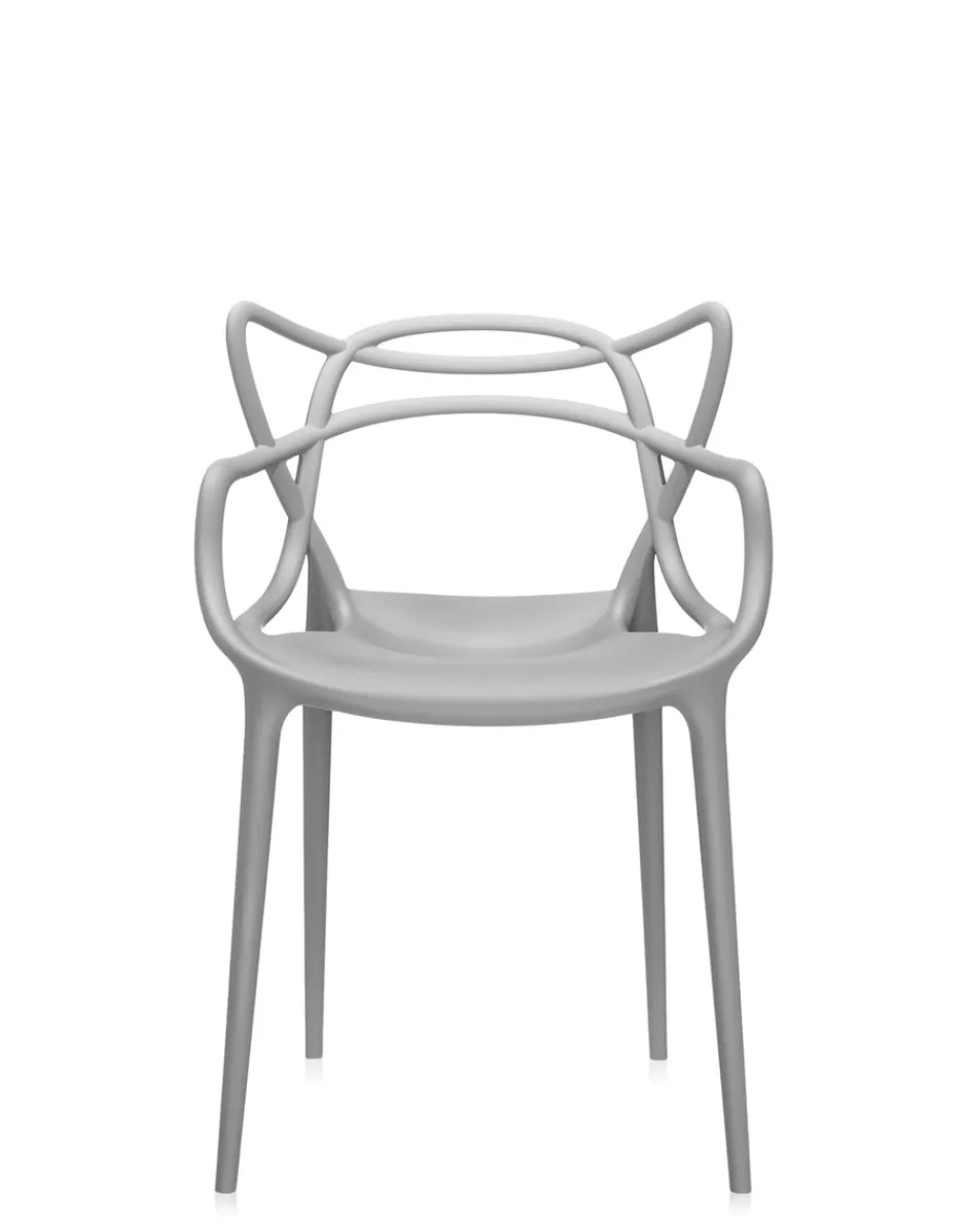 La sedia Masters è un acuto omaggio a tre sedie-simbolo, rilette e reinterpretate dal genio creativo di Starck. La “Serie 7” di Arne Jacobsen, la “Tulip Armchair” di Eero Saarinen e la “Eiffel Chair” di Charles Eames intrecciano le inconfondibili silhouette in un ibrido sinuoso, per dare vita a una fusione di stili originale e accattivante. Leggera e pratica, Masters può essere utilizzata anche all’esterno. Per un effetto più prezioso è proposta anche in finiture metallizzate.