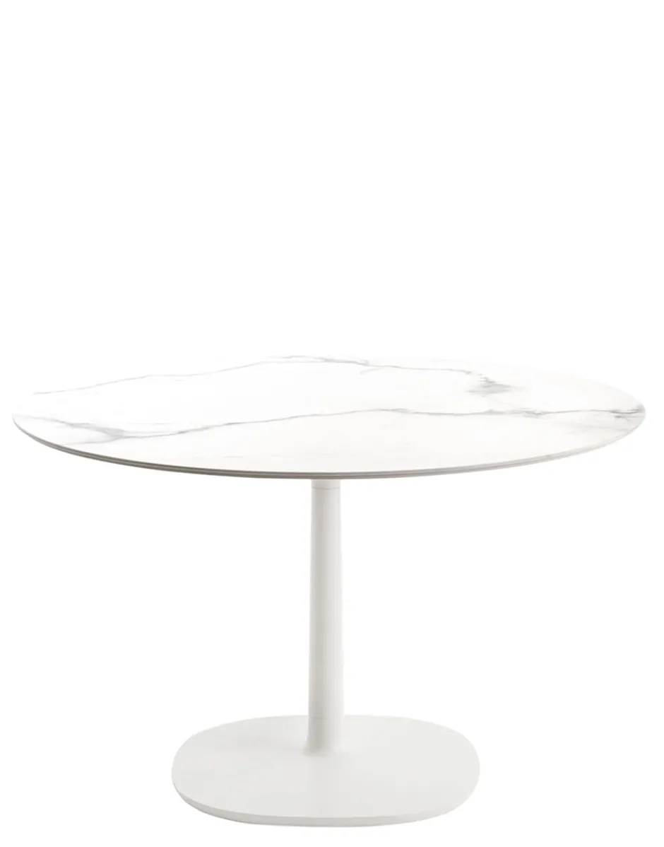 Multiplo è un’ampia famiglia di tavoli, trasversale nei suoi impieghi, e pensata per consentire la personalizzazione giocando sulle forme (quadrata stondata, tonda e ovale) e l’abbinamento di basi (base centrale, a due, tre o quattro razze) e piani (in gres tinta unita o finitura marmo e vetro).