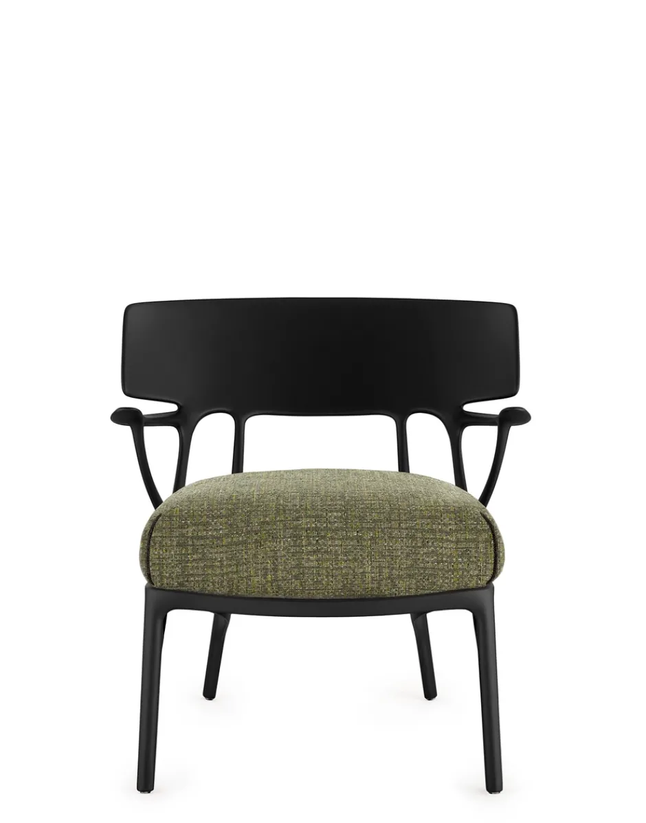 A.I. LOUNGE è la nuova poltrona della famiglia A.I. che coniuga materiali sostenibili e comfort con unsegno grafico che guarda al futuro e al benessere nei nostri luoghi dell’abitare. Una poltrona da salotto in cui lelinee, tratto distintivo della collezione, si mescolano alla massima comodità della seduta. Disponibile nei coloribianco, nero, arancio e grigio e nelle versioni con e senza cuscino per utilizzo indoor e outdoor.Il valore aggiunto di A.I. consiste nell’essere la prima famiglia di prodotti concepita dall’Intelligenza Artificiale che ha risposto agli input ricevuti dal designer (Philippe Starck) e al know-how dall’azienda (Kartell). Nello specifico, pensiero creativo, know-how aziendale e intelligenza artificiale si sono fuse per concepire un modello di sedia totalmente elaborato da un algoritmo che rispetta le richieste originali del designer e dell’azienda ovvero essere un prodotto, confortevole, che abbia i requisiti strutturali di resistenza e solidità richiesti, mantenendo anche uno dei valori principali di Kartell: essere un prodotto industriale stampato ad iniezione di grande qualità estetica.