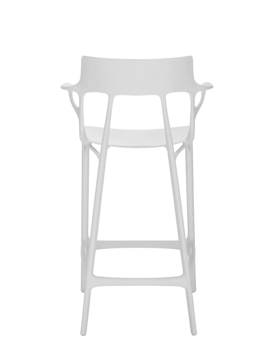 Si allarga la famiglia A.I. con A.I. Stool, uno sgabello in materiale riciclato che punta tutto sul comfort, con una seduta molto larga e accogliente. Disponibile in due altezze per soddisfare tutte le esigenze.Il valore aggiunto di A.I. consiste nell’essere la prima famiglia di prodotti concepita dall’Intelligenza Artificiale che ha risposto agli input ricevuti dal designer (Philippe Starck) e al know-how dall’azienda (Kartell). Nello specifico, pensiero creativo, know-how aziendale e intelligenza artificiale si sono fuse per concepire un modello di sedia totalmente elaborato da un algoritmo che rispetta le richieste originali del designer e dell’azienda ovvero essere un prodotto, confortevole, che abbia i requisiti strutturali di resistenza e solidità richiesti, mantenendo anche uno dei valori principali di Kartell: essere un prodotto industriale stampato ad iniezione di grande qualità estetica.
