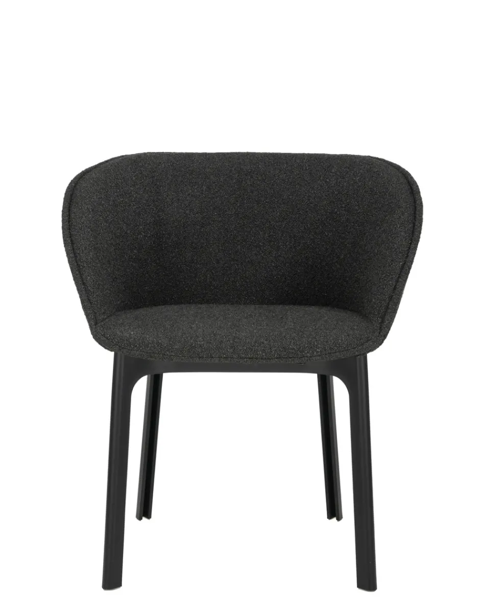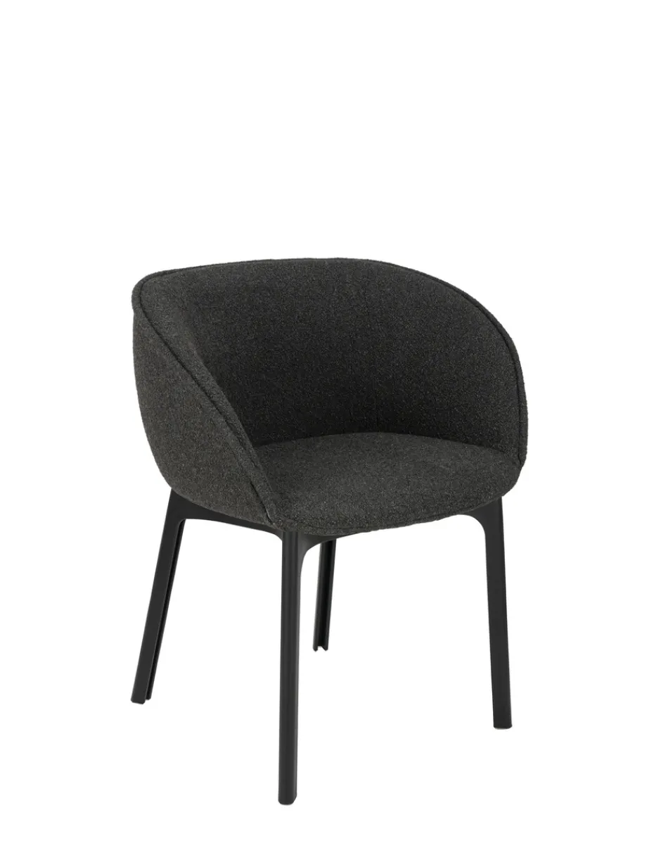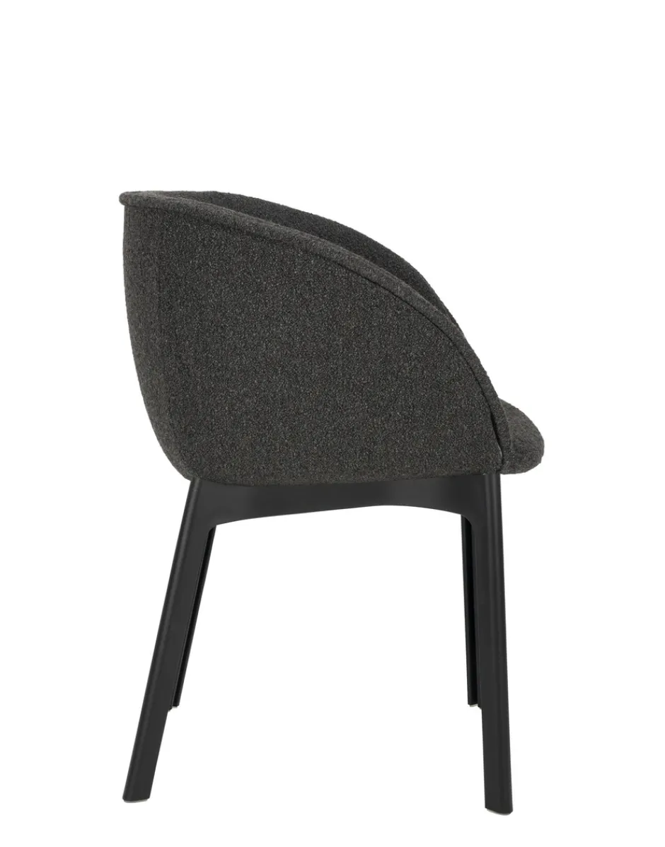 Eleganza e forme morbide: CHARLA è una poltroncina dining che abbraccia l’ospite con la sua seduta avvolgente. La poltroncina nasce con tutte le attenzioni per adattarsi a scenari contract e consumer, che si tratti di una breve pausa nella hall di un hotel o di una cena nel soggiorno di casa.Le gambe in materiale plastico riciclato, per un prodotto che unisce eleganza e attenzione all’ambiente, sono disponibili nel colore nero, mentre i rivestimenti sono in bouclé o tessuto contract mélange.