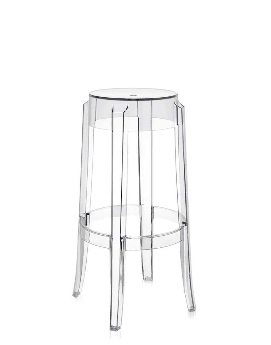 Charles Ghost è lo sgabello che richiama la forma delle sedute dell’ 800. La linea della gamba è arrotondata e leggermente arricciata, icona dello sgabello classico. É disponibile in tre diverse altezze: dallo sgabello per una seduta occasionale ed informale allo sgabello per il banco cucina o il bancone bar. Si adatta ad ambienti indoor come a quelli outdoor.