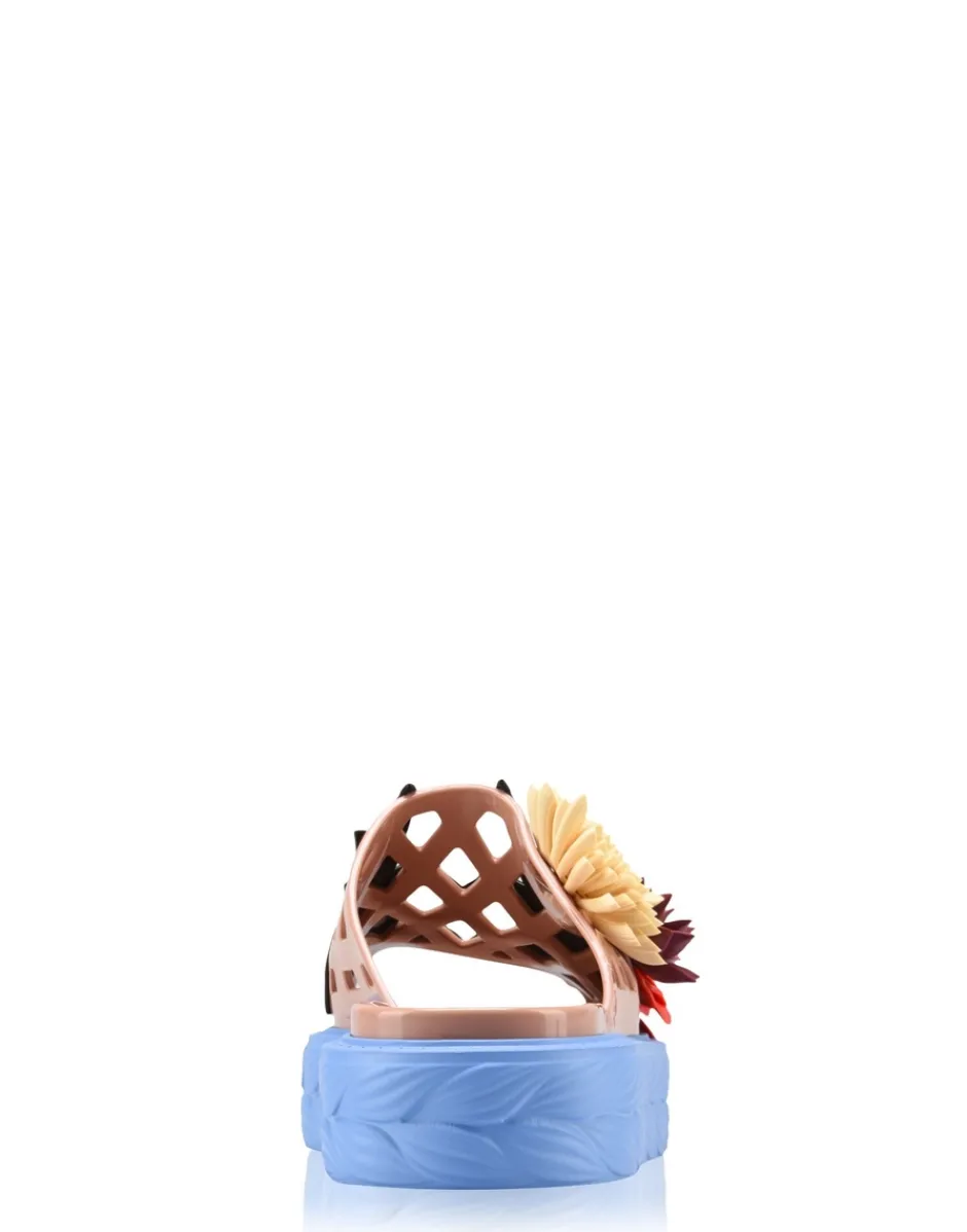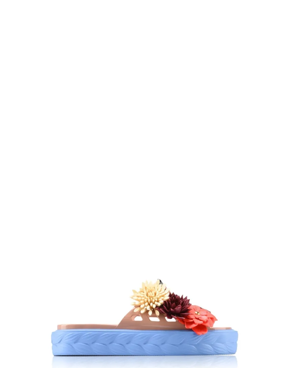 Il sandalo Claudia è disponibile in diverse varianti colore. Il motivo delle due mani che formano un cuore caratterizza la fascia della tomaia, a cui sono inoltre applicate riproduzioni di fiori tridimensionali.