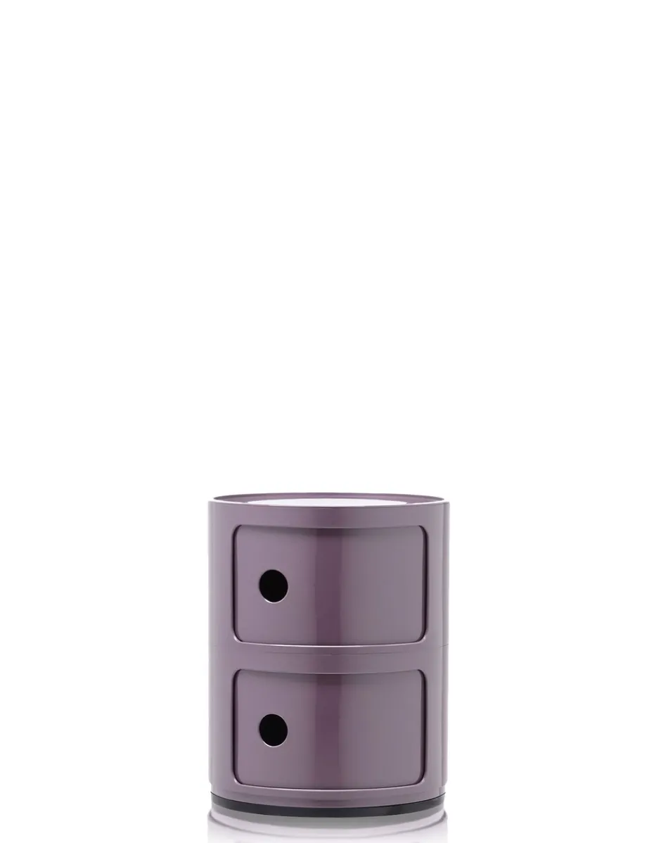 Gli elementi componibili sono stati progettati per rispondere a diverse esigenze d’uso e vivere in ogni ambiente della casa. I Componibili nati nel 1967 sono un classico senza tempo dell’arredamento, sono proposti oggi in forma rotonda con diametro da 32 cm. Grazie alle composizioni fisse da due, tre e quattro elementi risultano essere funzionali e pratici per ogni ambiente. Questo modello viene proposto in sei finiture glossy e una finitura silver opaca.