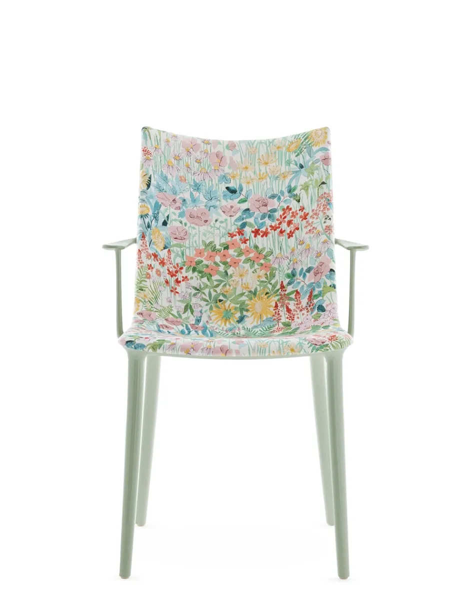 Philippe Starck ci conduce verso un nuovo vertice con la sedia H.H.H. – HER HIGHEST HIGHNESS. Con un’eleganza e un’imponenza grafica senza pari, H.H.H. definisce l’essenza stessa dell’essere umano che interagisce con essa, costringendolo a prendere una posizione. Un oggetto che va oltre il mero concetto di seduta, trasformando ogni momento trascorso su di essa in un momento di vera e propria regalità. La struttura è in materiale riciclato e la seduta è disponibile in diverse finiture: pelle riciclata con trattamento di concia green, nei colori nero e cuoio, ecofriendly texture proveniente in parte da materiale riciclato e in parte da fonti rinnovabili nei colori nero e tabacco e nella finitura lucida super glossy nei colori bianco, nero, bordeaux, ruggine, senape, blu e verde.Ma H.H.H. si eleva al di sopra delle semplici funzioni pratiche di una sedia, diventando un emblema di stile e che incanta e ispira chiunque vi si avvicini grazie all’edizione Kartell x Liberty, rivestita in sei tessuti Liberty con vivaci stampe floreali.Fedele al suo essere pioniera nella ricerca di nuove e diverse forme di innovazione tecnologica, Kartell ha inoltre deciso di fare un ulteriore passo in questa direzione, sperimentando una nuova tecnica di “graphic impression” in cui, con uno stampaggio altamente tecnologico, vengono proposti 4 pattern floreali e geometrici in diverse versioni cromatiche.