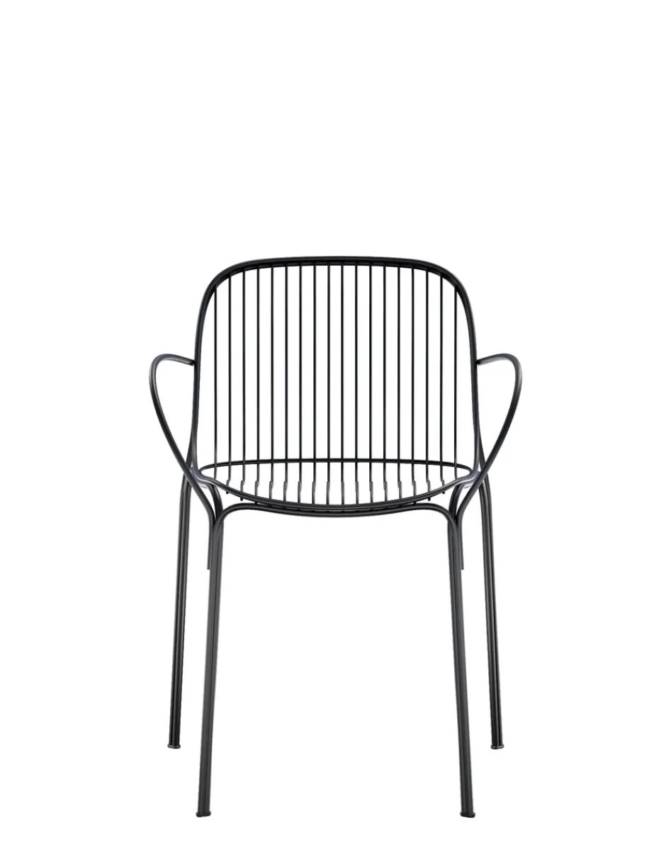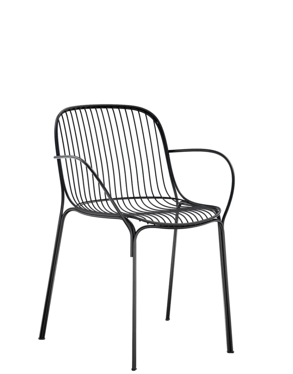 HIRAY gioca con il metallo, tra i materiali piùimportanti nella ridefinizione green del catalogo Kartell, lavorandolo con la tecnica del filo saldato. Il risultato è un segno essenziale e funzionalista e allo stesso tempo intriso di emozione. I fili di metallo disegnano pezzi dalla struttura ben definita ma leggera: sedia, sedia con braccioli, tavolino bistrot, poltrona, divano e side table. I colori della collezione sono bianco, bordeaux, nero e verde.