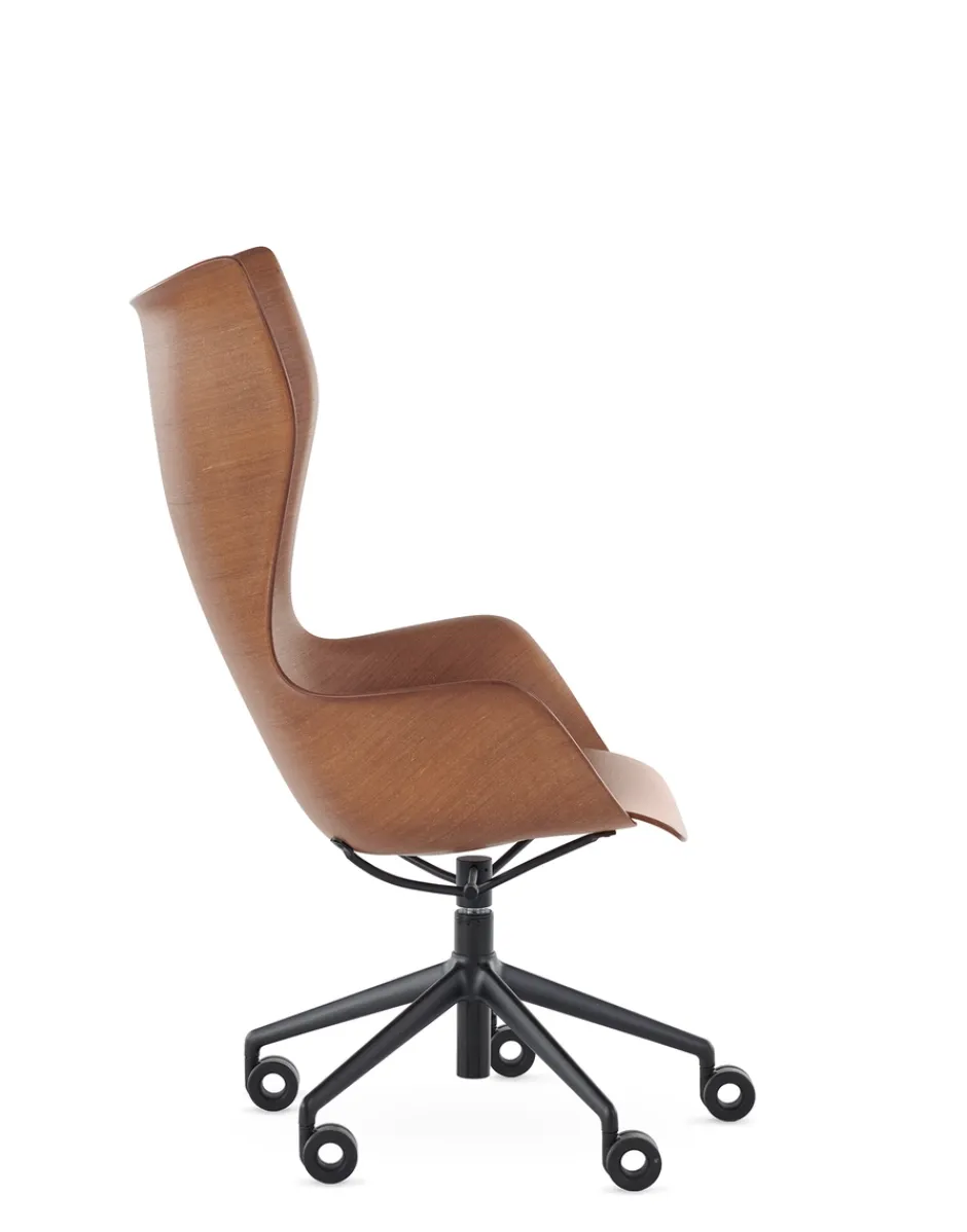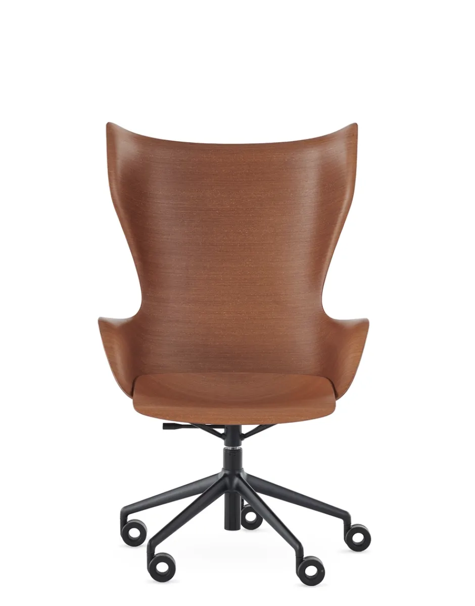 K/Wood è la poltrona che porta con sé un’eleganza regale, anche nella sua nuova variante dotata di ruote. Questa poltrona incarna lo stile e la raffinatezza dei mobili reali, aggiungendo un tocco di nobiltà e distinzione a qualsiasi ambiente in cui è collocata. Con le sue ruote, K/Wood diventa ancora più versatile e funzionale, consentendo di spostarsi con facilità all’interno dello spazio. Che sia utilizzata in un salotto, in uno studio o in una sala riunioni, questa poltrona si distingue per la sua presenza maestosa e per il suo comfort avvolgente. Struttura in acciaio verniciato o cromato disponibile nelle versioni Basic Veneer legno chiaro/cromo, legno scuro/cromo, legno scuro/nero.