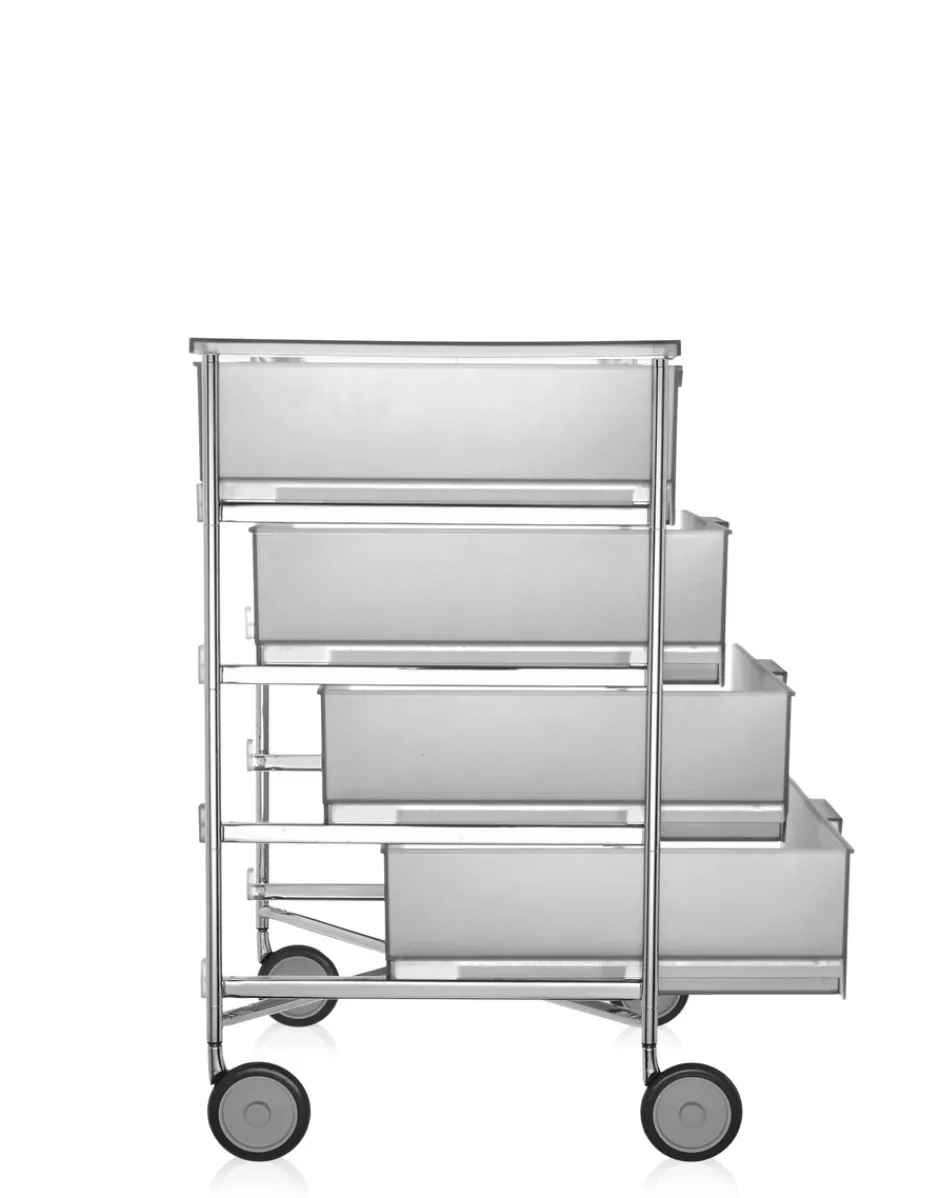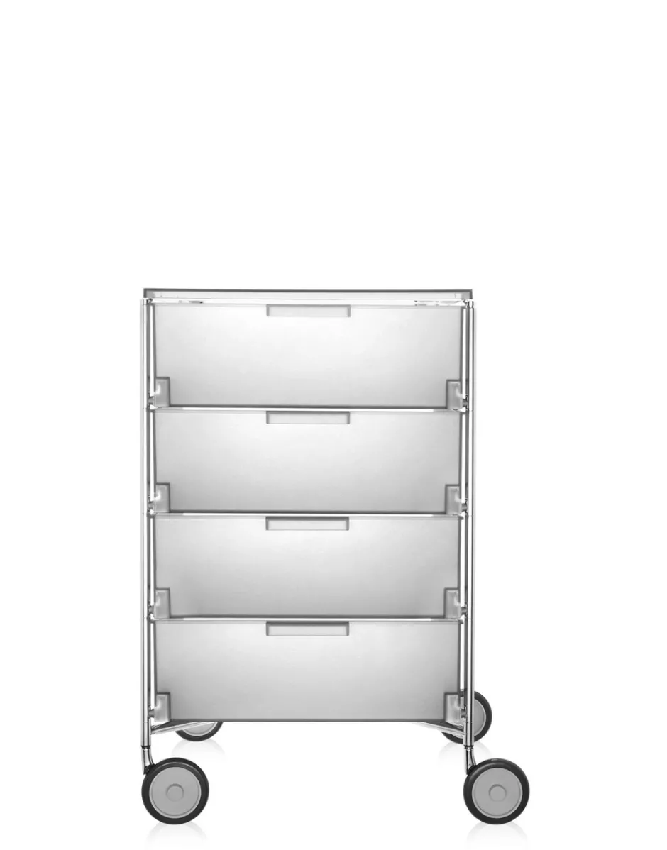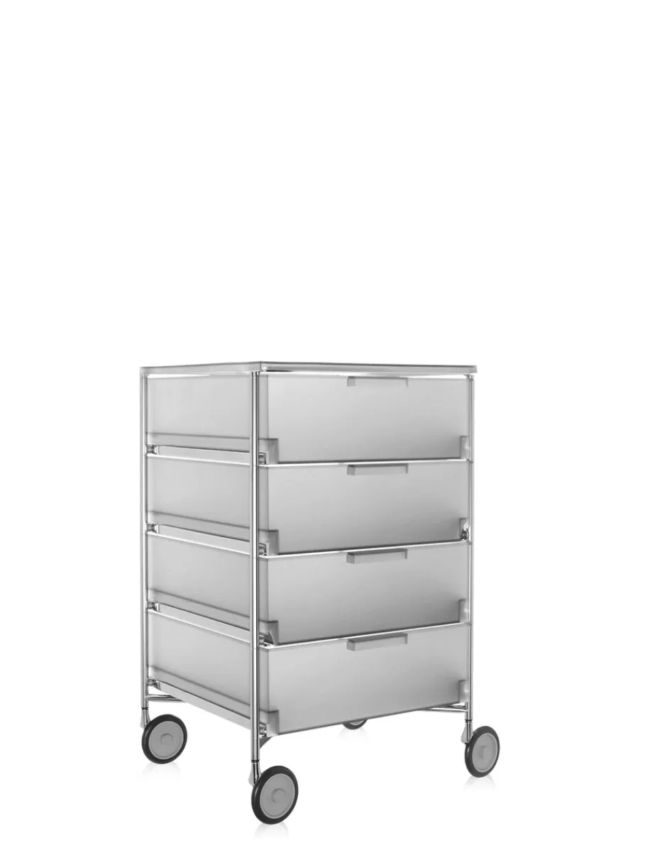 Mobil è un sistema di contenitori che si prestano ad essere inseriti in tutti gli ambienti della casa e dell’ufficio, rispondendo a diverse funzioni d’uso. Il cassetto, alternato ai piani e ai top superiori, è l’elemento base del sistema. Mobil può essere semplice cassettiera da 2 a 6 cassetti e avere comode maniglie. Le possibili configurazioni possono poggiare su ruote o su piedini fissi, suggerendo l’uso di Mobil in diversi contesti: dalla camera da letto al soggiorno al bagno, allo studio o l’ufficio come cassettiera da scrivania per riporre cancelleria e documenti.