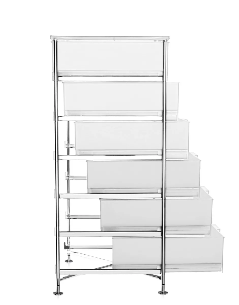 Mobil è un sistema di contenitori che si prestano ad essere inseriti in tutti gli ambienti della casa e dell’ufficio, rispondendo a diverse funzioni d’uso. Il cassetto, alternato ai piani e ai top superiori, è l’elemento base del sistema. Mobil può essere semplice cassettiera da 2 a 6 cassetti e avere comode maniglie. Le possibili configurazioni possono poggiare su ruote o su piedini fissi, suggerendo l’uso di Mobil in diversi contesti: dalla camera da letto al soggiorno al bagno, allo studio o l’ufficio come cassettiera da scrivania per riporre cancelleria e documenti.