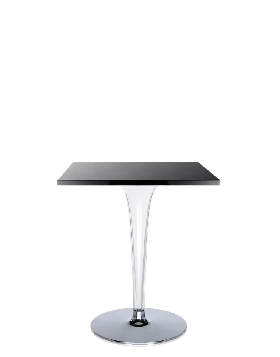 La linea di tavolini TopTop si contraddistingue per la gamba che può essere trasparente a sezione rotonda o quadrata, con la superficie sfaccettata e un’anima in metallo.