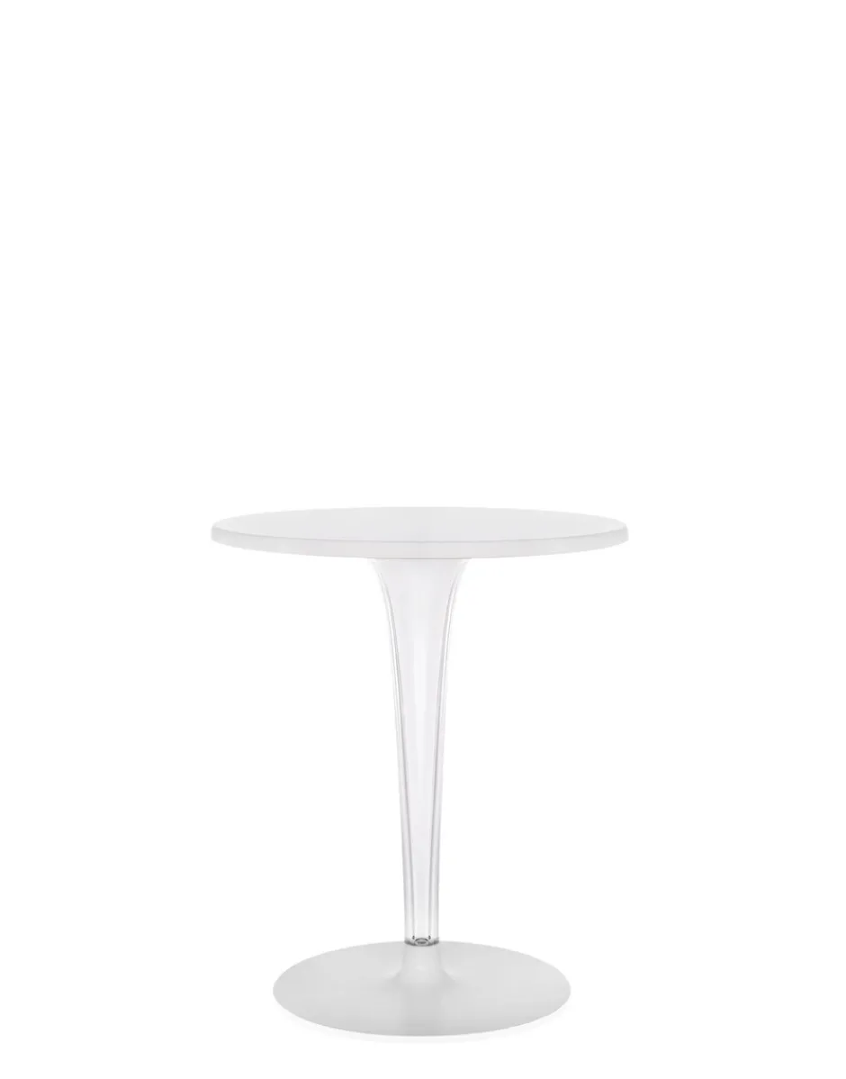 La linea di tavolini TopTop si contraddistingue per la gamba che può essere trasparente a sezione rotonda o quadrata, con la superficie sfaccettata e un’anima in metallo.