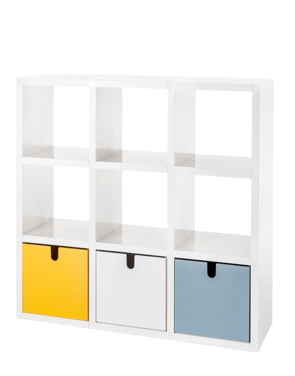 Polvara è la storica libreria modulabile che è possibile configuare a seconda delle esigenze abitative. Polvara è completata da cassetti in differenti colori che creano composizioni sempre diverse.