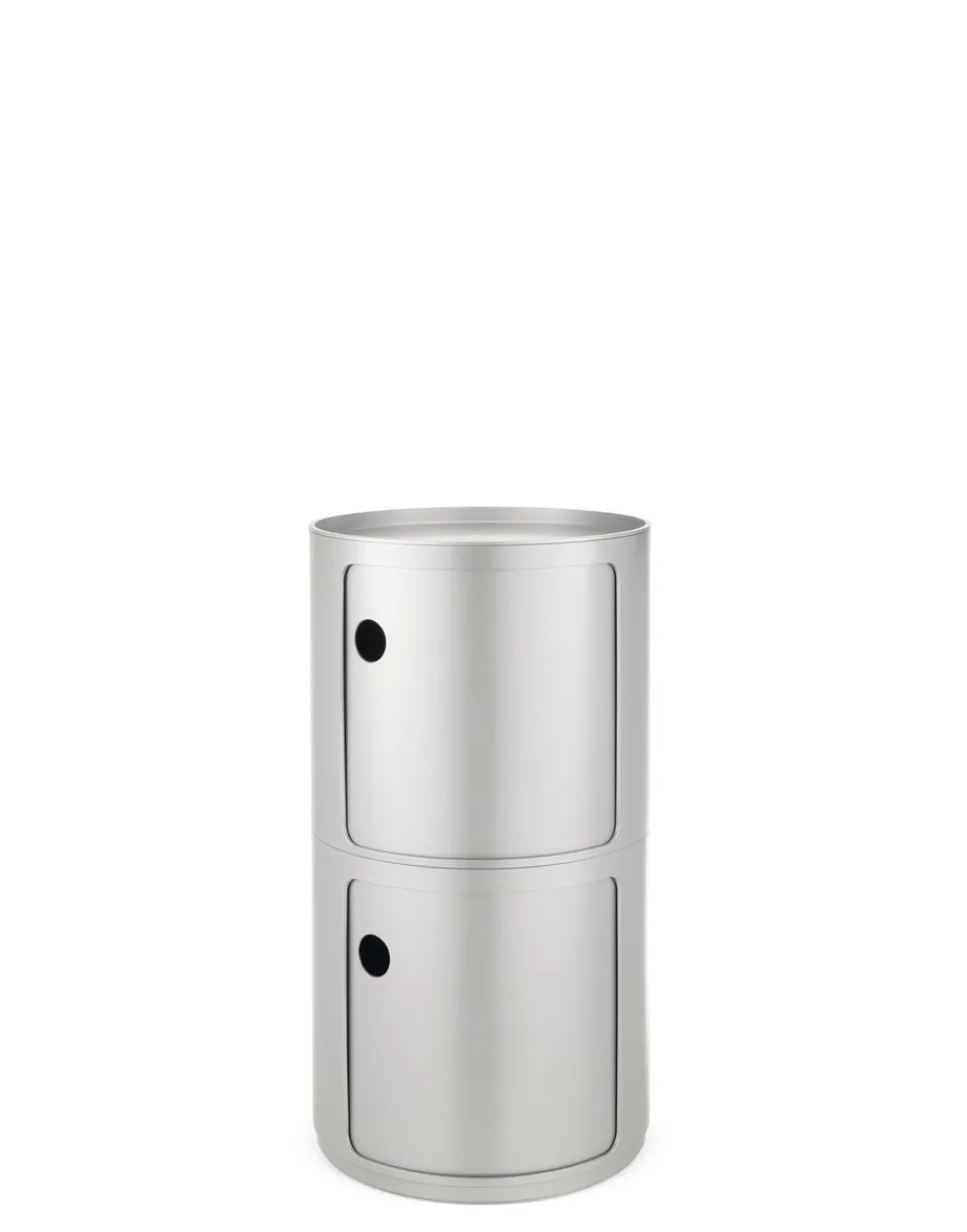 Gli elementi componibili sono stati progettati per rispondere a diverse esigenze d’uso e vivere in ogni ambiente della casa. La soluzione progettuale che anima il sistema Componibili è l’elementare e solida sovrapposizione verticale dei singoli pezzi che, tramite semplice incastro, vanno a comporre pratici mobili contenitori. Proposti in forma rotonda (diametro 42 cm) e quadrata (38x38cm), i Componibili possono poggiare su rotelle. Flessibili, funzionali, pratici, i Componibili nati nel 1967 sono un classico senza tempo dell’arredamento.