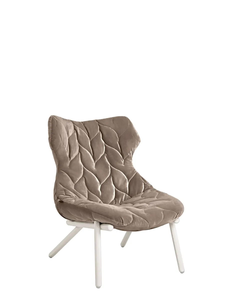 Foliage è una famiglia di sedute soft dove i protagonisti sono un divano a due posti e una poltrona, che sembrano cresciuti “in natura”: la struttura offre l’appoggio ad una seduta comfort che rievoca l’immagine della chioma di un albero, le cui foglie sono evidenziate da apposite impunture.