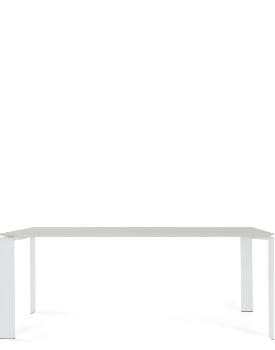 Un funzionale e raffinato tavolo dal design rigoroso e geometrico. Grazie ad un’elegante soluzione progettuale, la posizione del piano sottile consente di inserire facilmente cassettiere o mobili contenitori per supporti informatici. Può essere utilizzato accostando più elementi per formare isole operative in ambienti ufficio.