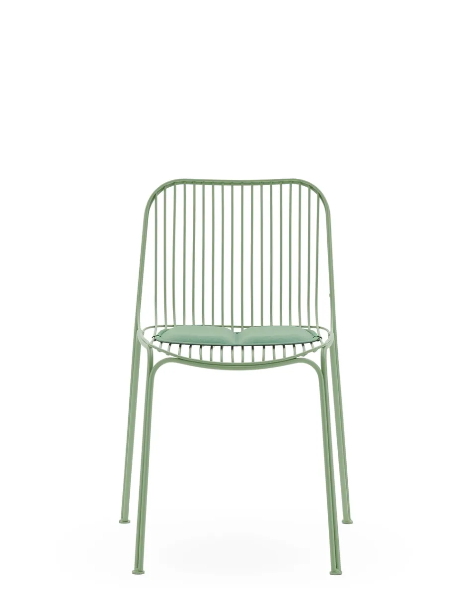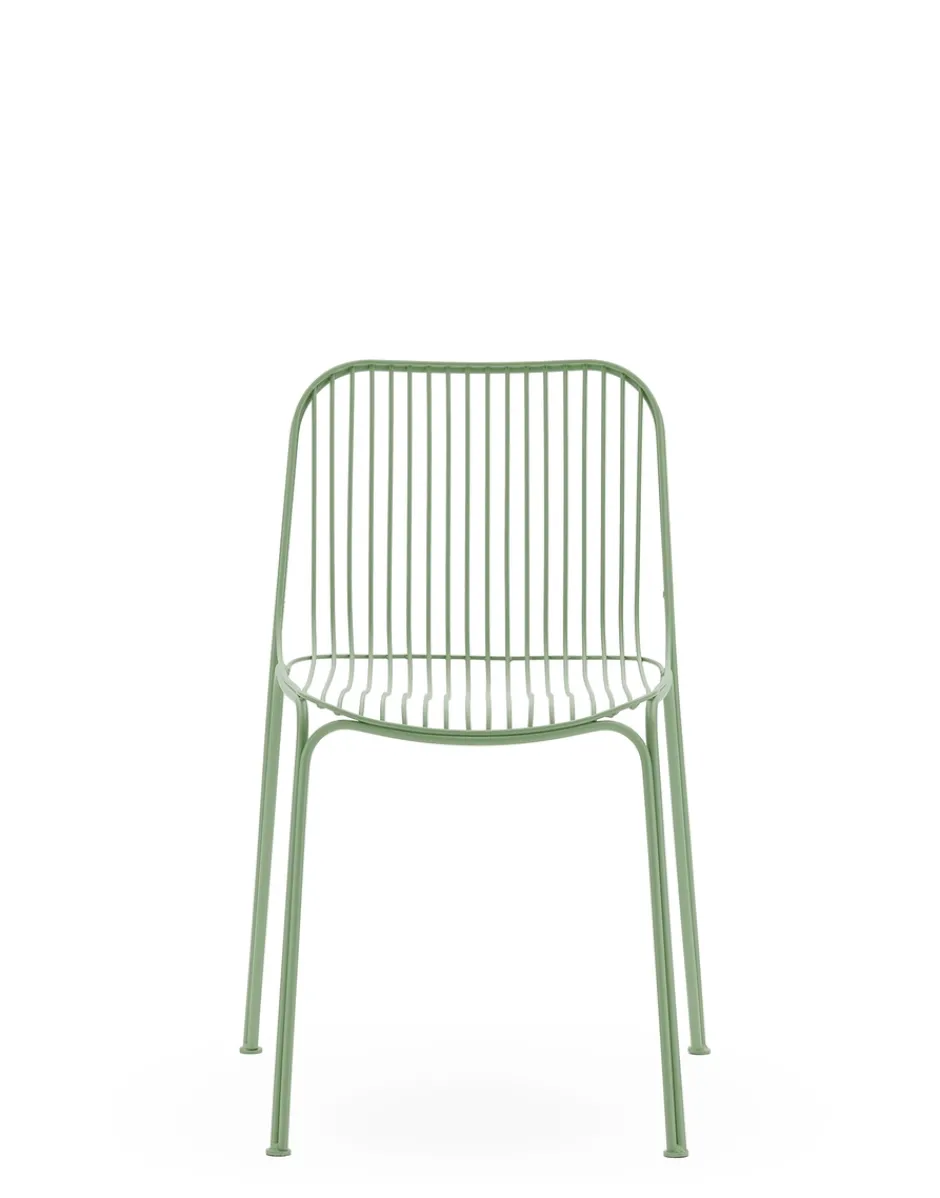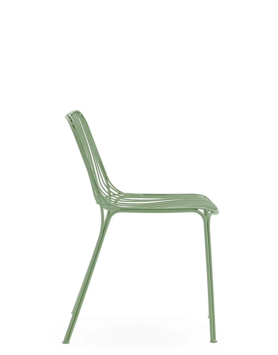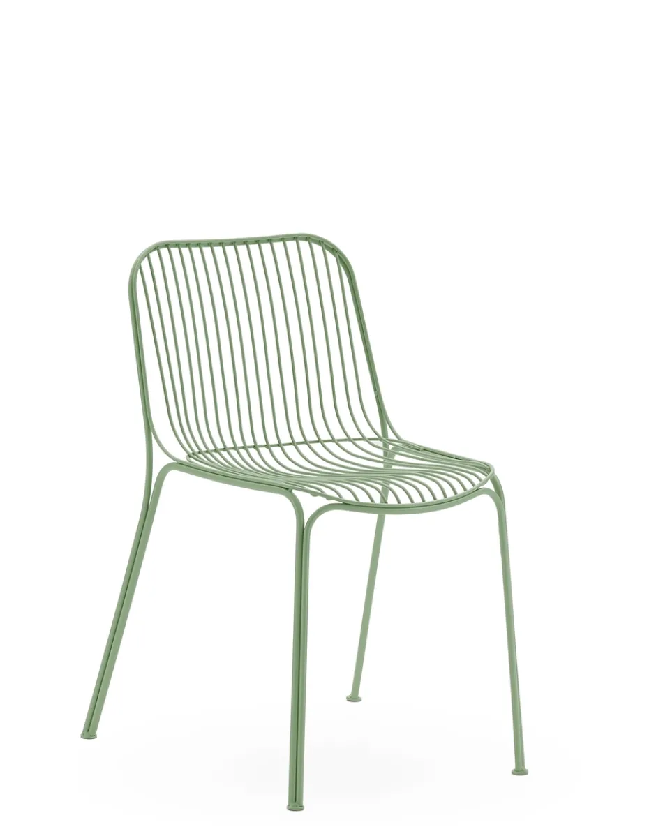 HIRAY gioca con il metallo, tra i materiali piùimportanti nella ridefinizione green del catalogo Kartell, lavorandolo con la tecnica del filo saldato. Il risultato è un segno essenziale e funzionalista e allo stesso tempo intriso di emozione. I fili di metallo disegnano pezzi dalla struttura ben definita ma leggera: sedia, sedia con braccioli, tavolino bistrot, poltrona, divano e side table. I colori della collezione sono bianco, bordeaux, nero e verde.