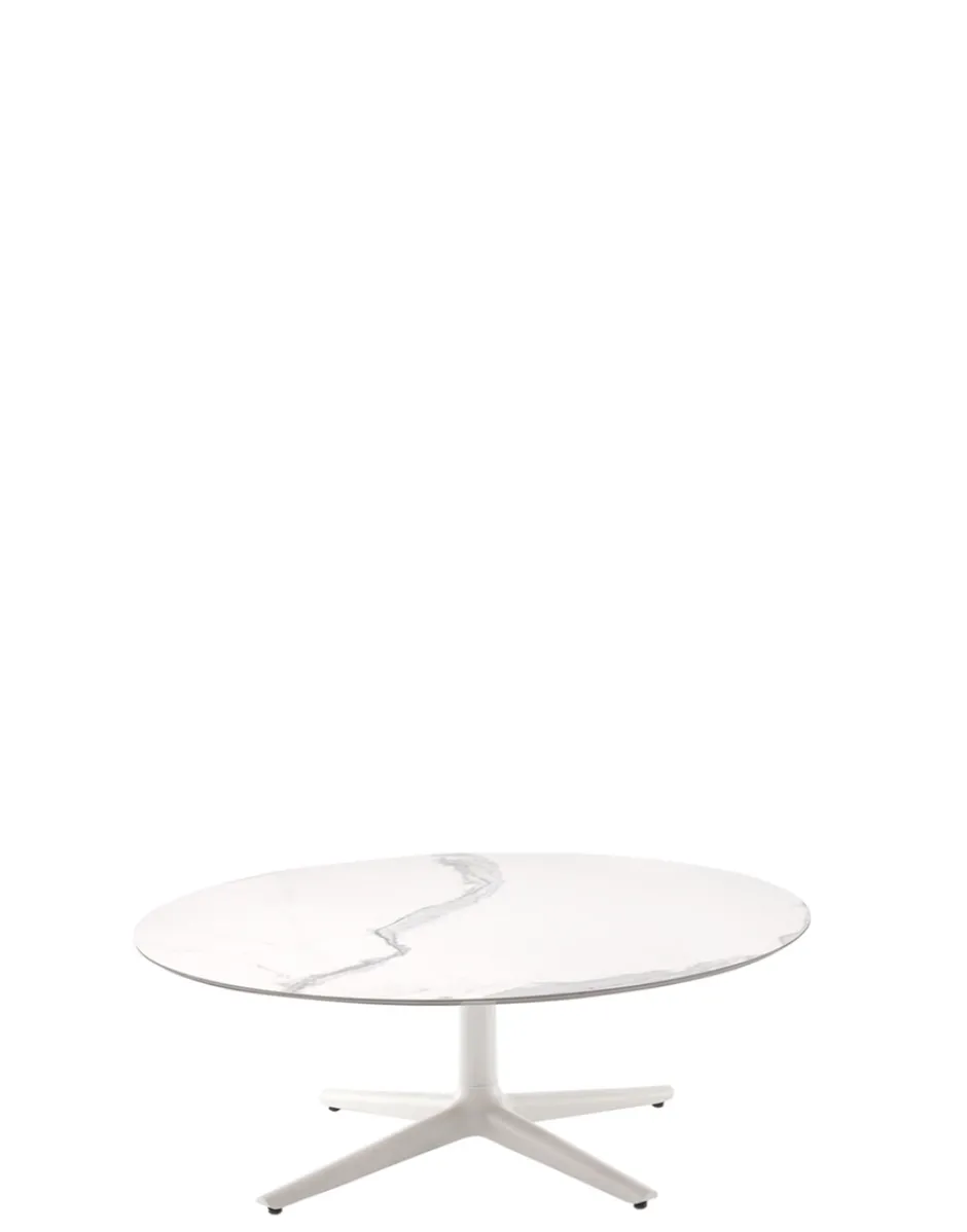 Multiplo è un’ampia famiglia di tavoli, trasversale nei suoi impieghi, e pensata per consentire la personalizzazione giocando sulle forme (quadrata stondata, tonda e ovale) e l’abbinamento di basi (base centrale, a due, tre o quattro razze) e piani (in gres tinta unita o finitura marmo e vetro).