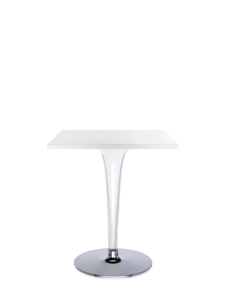 La linea di tavolini TopTop si contraddistingue per la gamba che può essere trasparente a sezione rotonda o quadrata, con la superficie sfaccettata e un’anima in metallo.