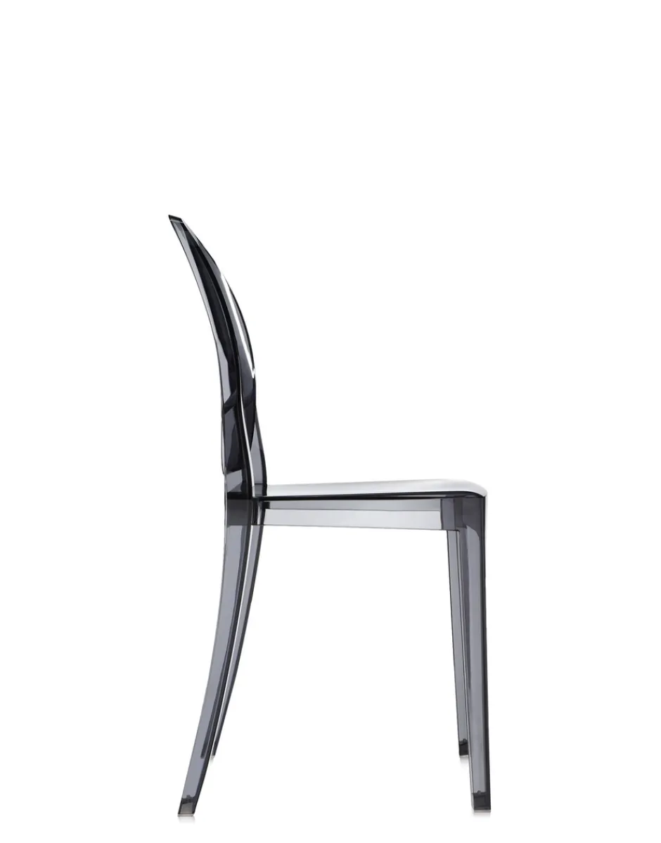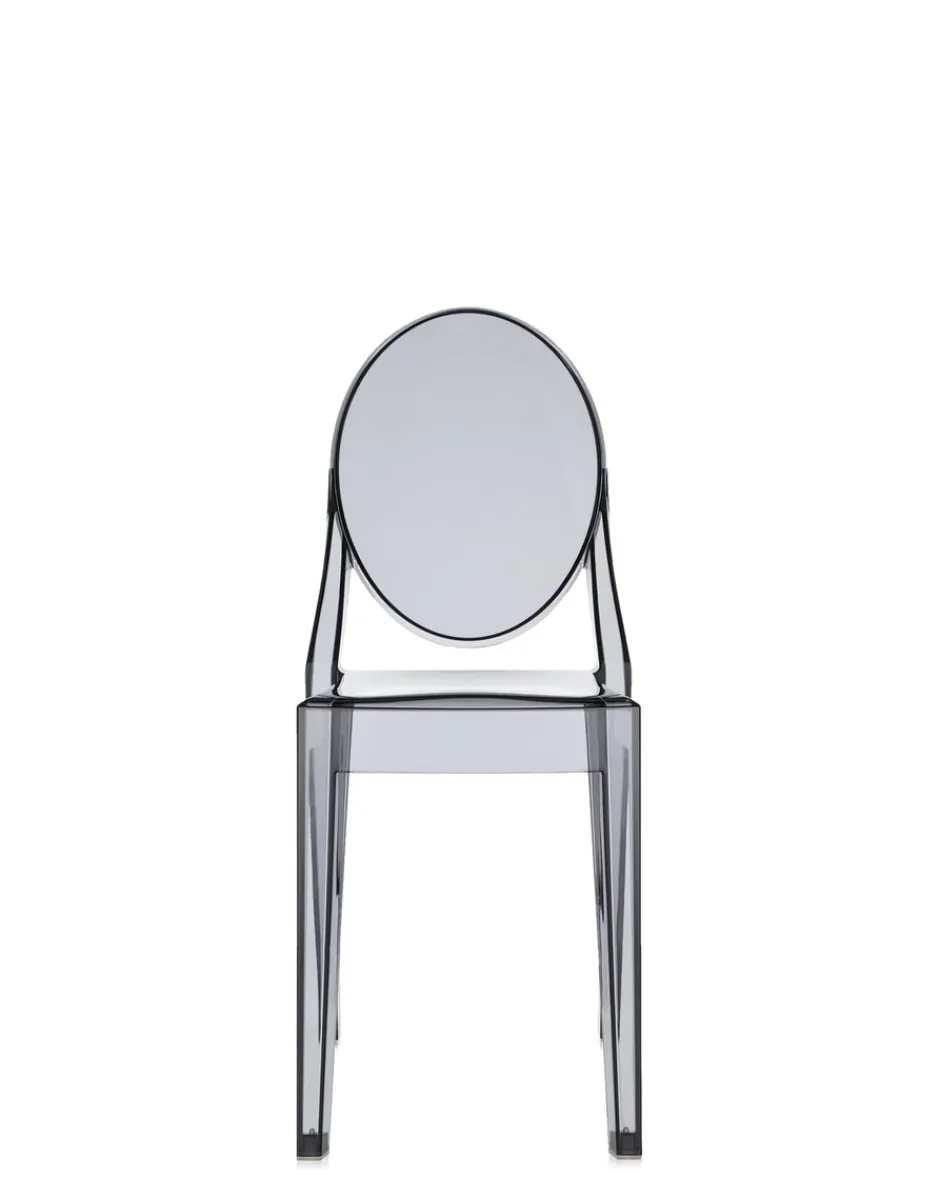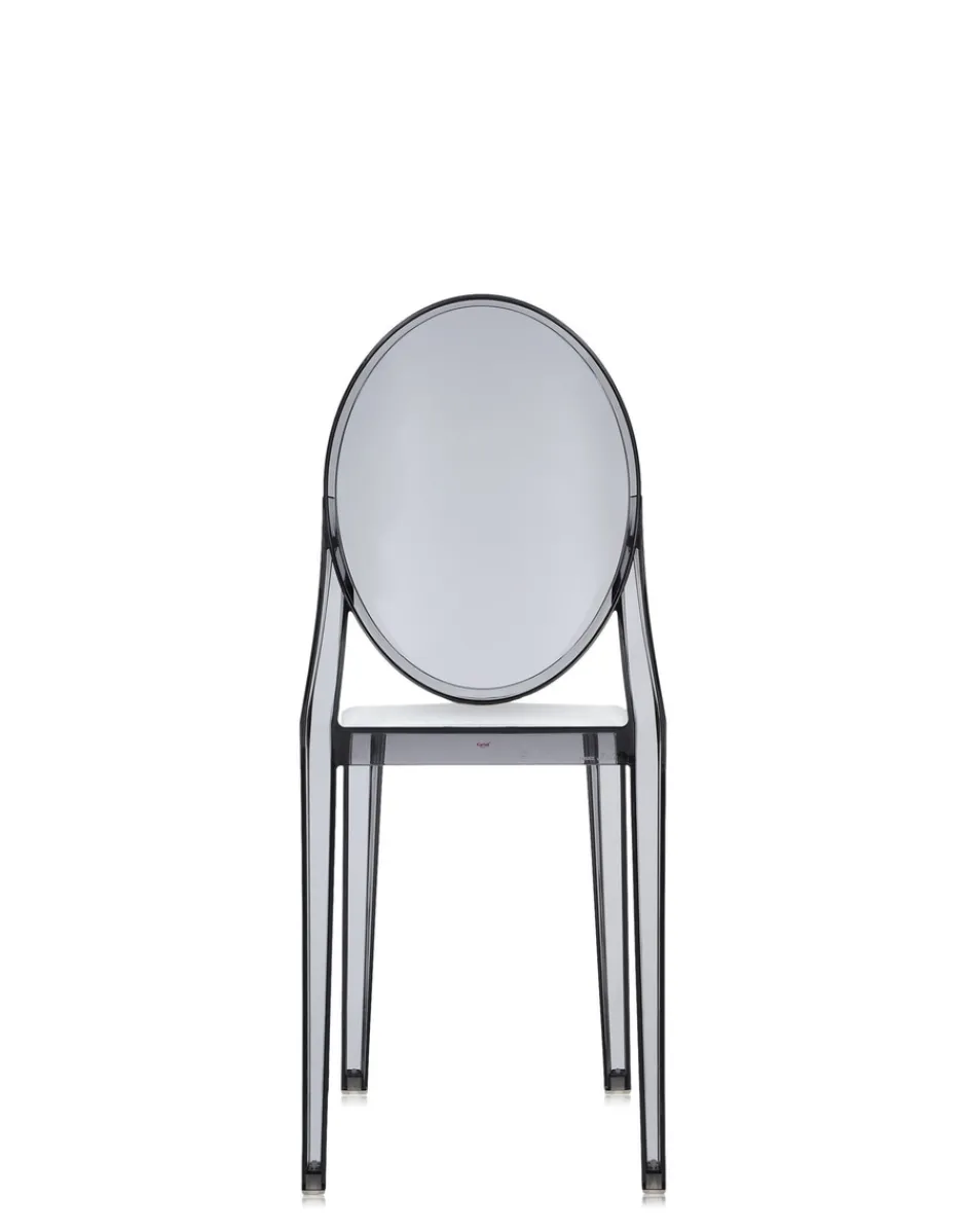 Una sedia nata da linee classiche, lo schienale è arrotondato e ricorda la forma degli antichi medaglioni mentre la seduta è lineare e geometrica. Victoria Ghost è in policarbonato trasparente o colorato ed è realizzata in un unico stampo ad iniezione. É stabile, confortevole, non teme urti ed è resistente agli agenti atmosferici. Un prodotto di grande carisma e personalità che si inserisce con eleganza e versatilità in ogni tipo di ambiente.